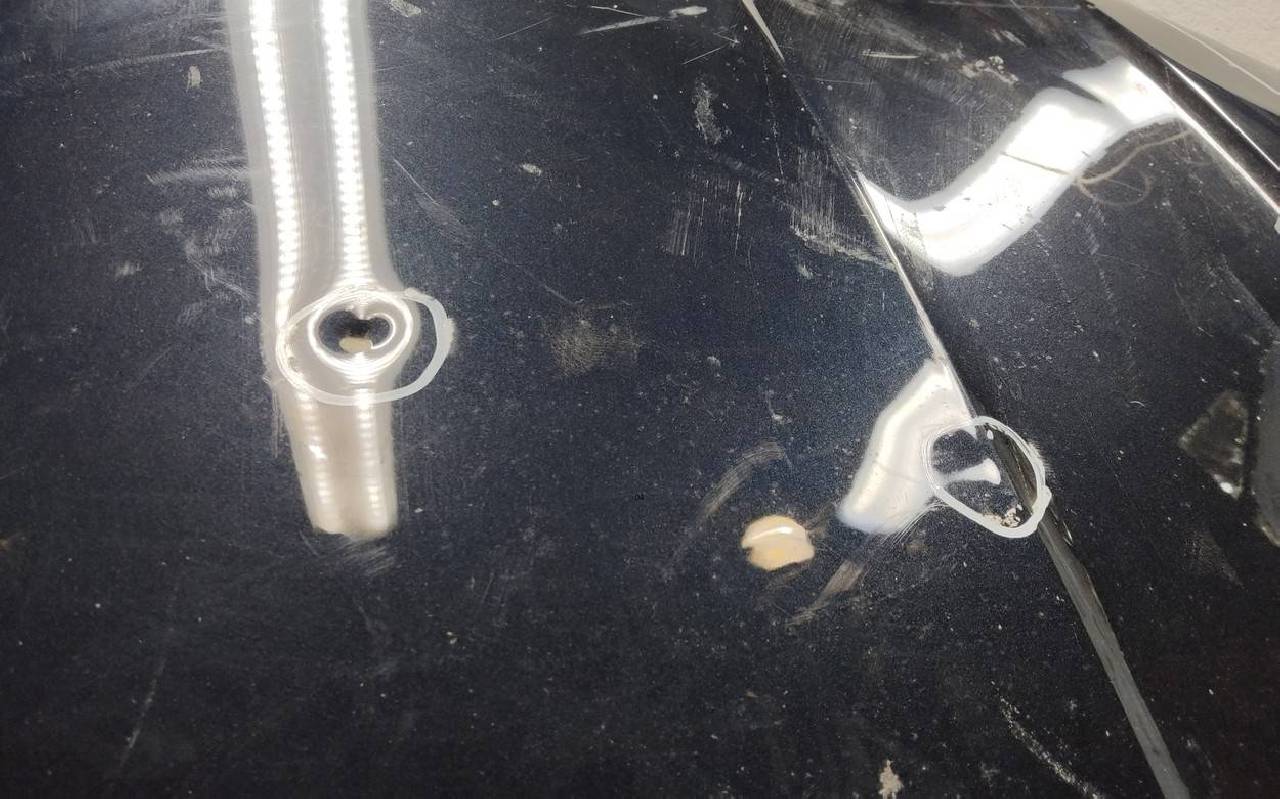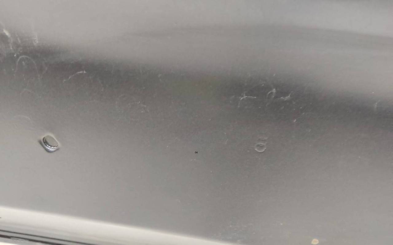 Состояние детали хорошее. Тёмно-синего цвета, скол ЛКП. Подогнуты уголки. Небольшая вмятина на внешней и внутренней поверхности, тычки. Потребуется ремонт