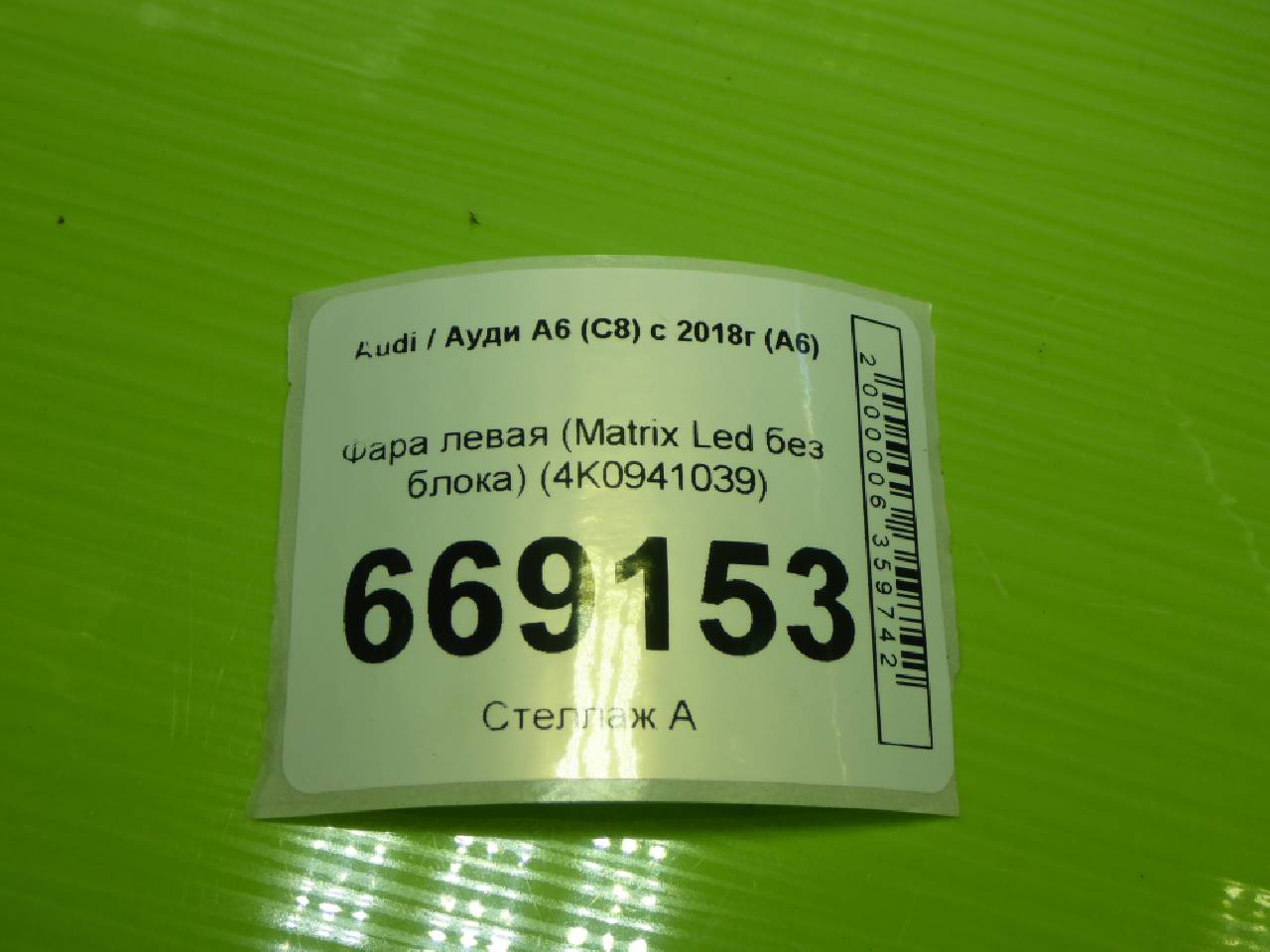 Деталь: Audi A6 C8 - Фара левая (Matrix Led без блока) (4K0941039)