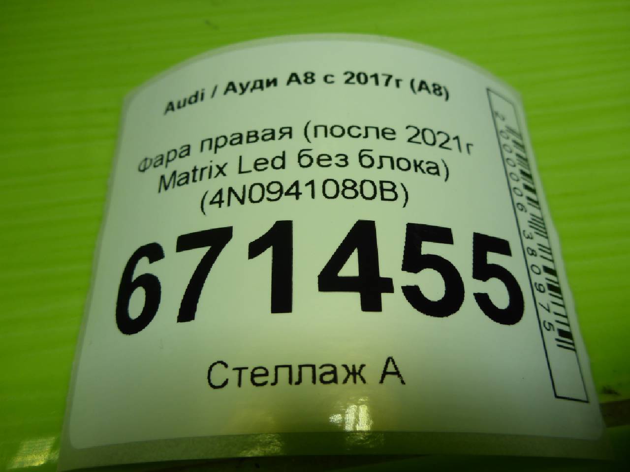 Деталь: Audi A8 D4 - Фара правая (после 2021г Matrix Led без блока) (4N0941080B)