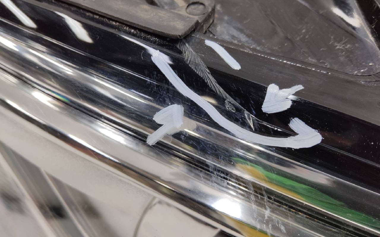 Состояние детали удовлетворительное. Трещина стекла на фото. Отсутствует одно крепление. Потребуется ремонт
