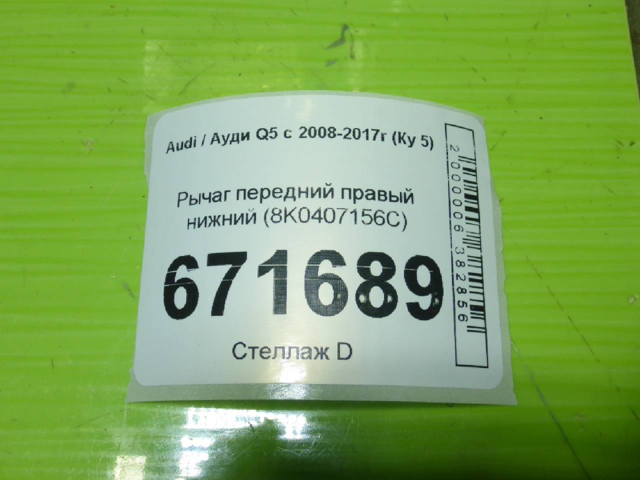 Купить Рычаг передний правый нижний (8K0407156C) 8K0407156C для Audi Q5 (Ауди Ку5) RR671689 ✓ с доставкой по Москве и России