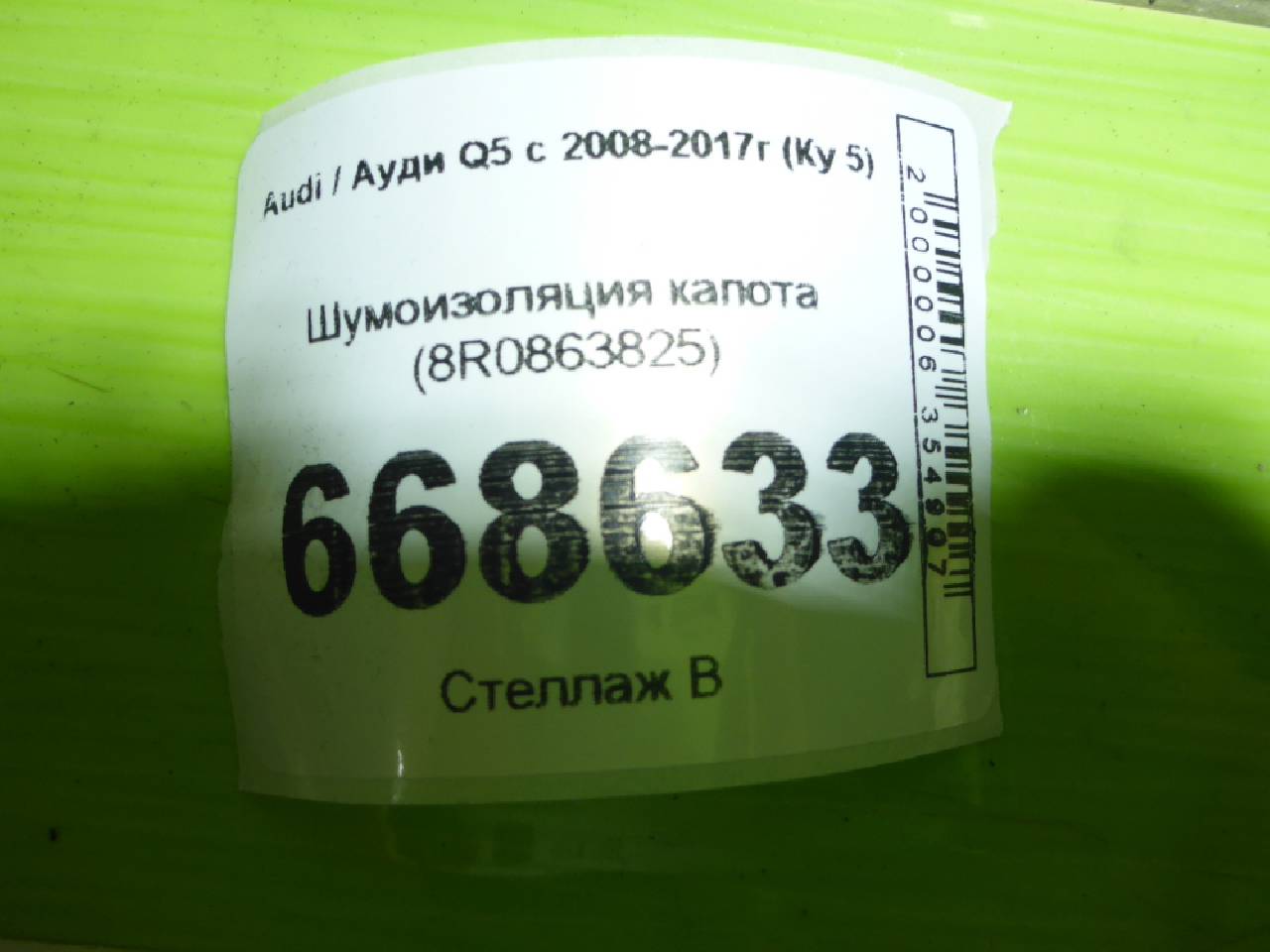 Деталь: Audi Q5 - Шумоизоляция капота (8R0863825)