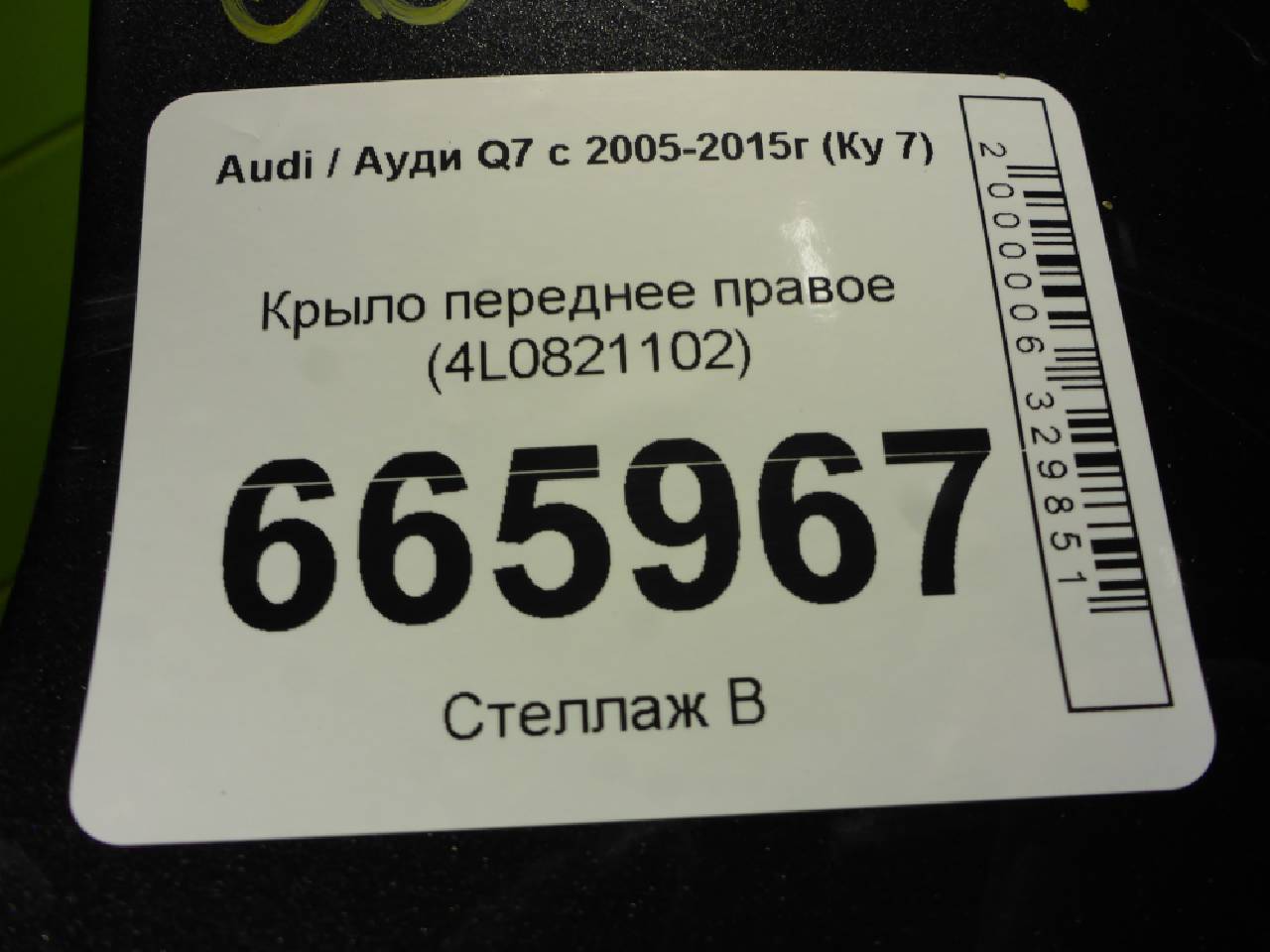 Деталь: Audi Q7 4L - Крыло переднее правое (4L0821102)