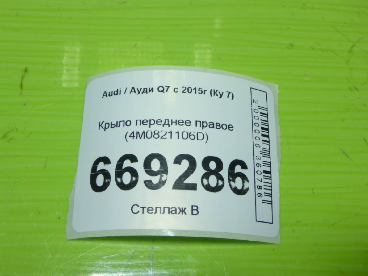 Купить Крыло переднее правое (4M0821106D) 4M0821106D для Audi Q7 4L (Ауди Ку7 4Л) RR669286 ✓ с доставкой по Москве и России