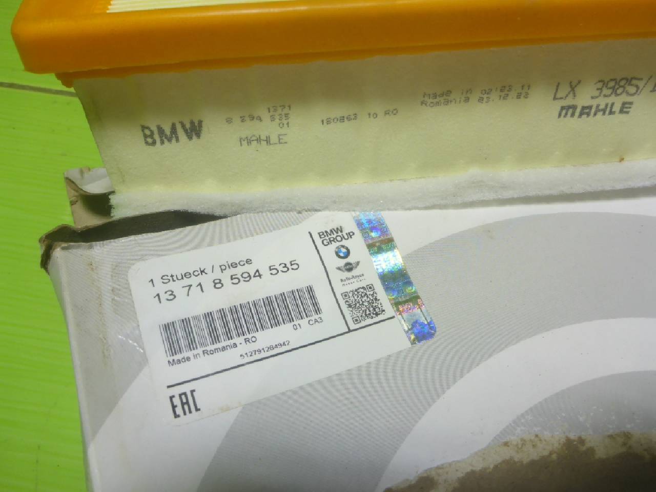 Деталь: BMW 3 E90 - Фильтр воздушный (новый оригинал 1.8л 2.0л) (13718594535)