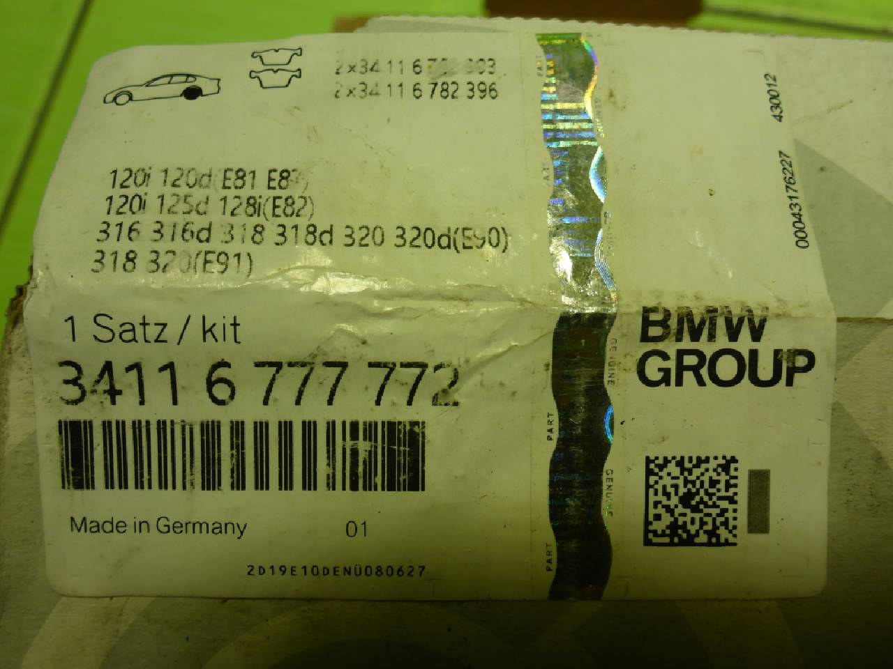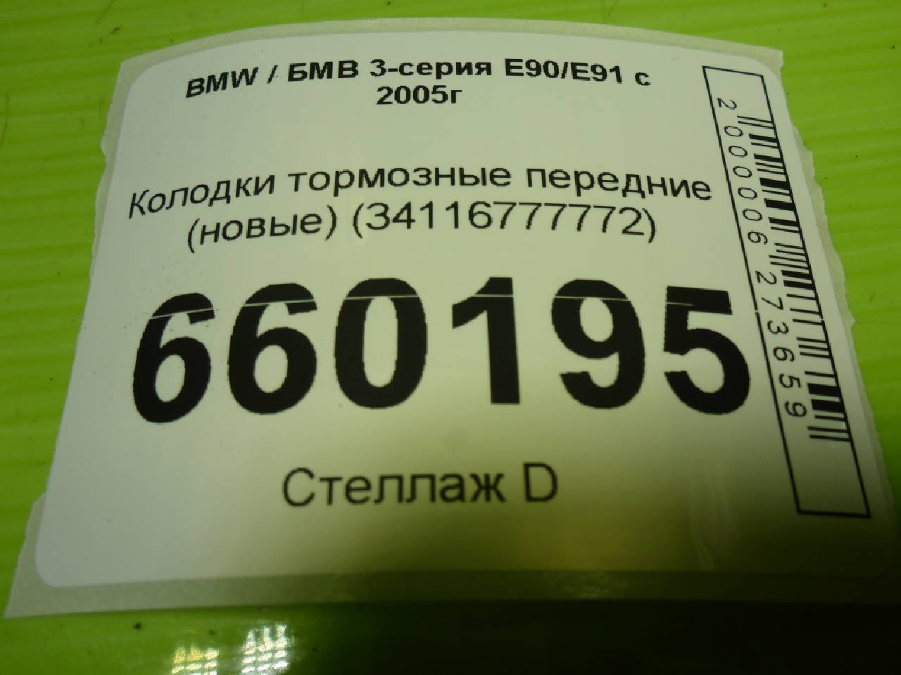 Деталь: BMW 3 E90 - Колодки тормозные передние (новые) (34116777772)