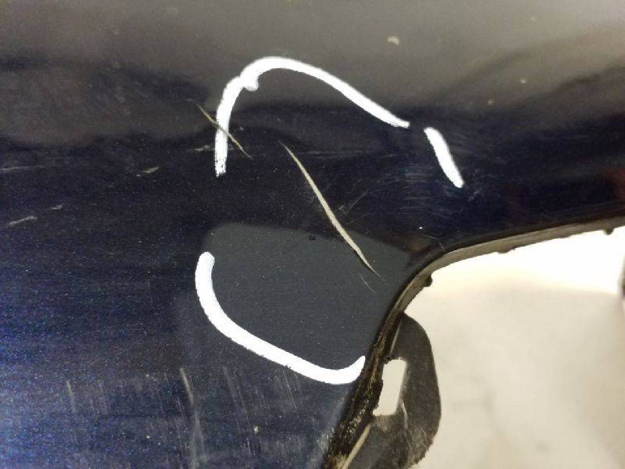 Бампер задний BMW 3er F30 рестайлинг цвет темно-синий потертость поверхности крепления целые б/у оригинал дефект пластика в районе крышки багажника на фото трещина в районе заглушки. . .