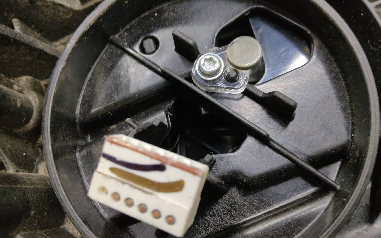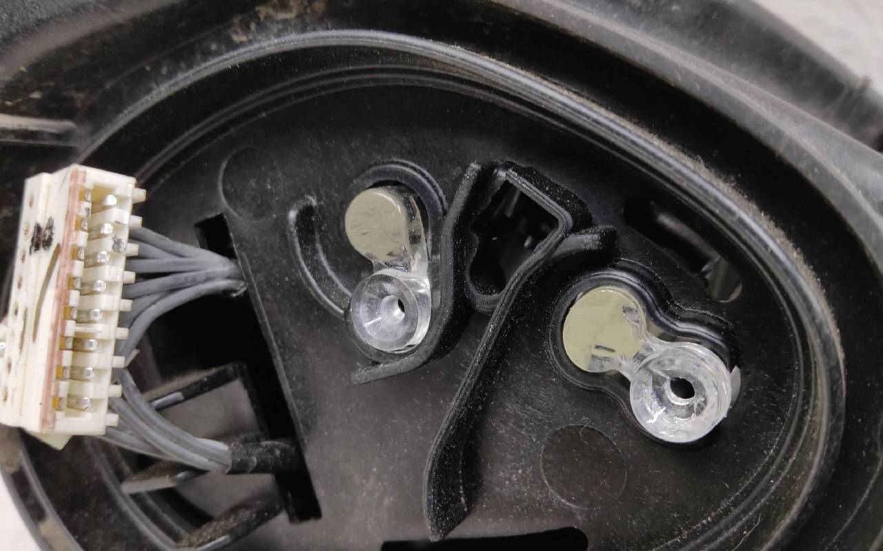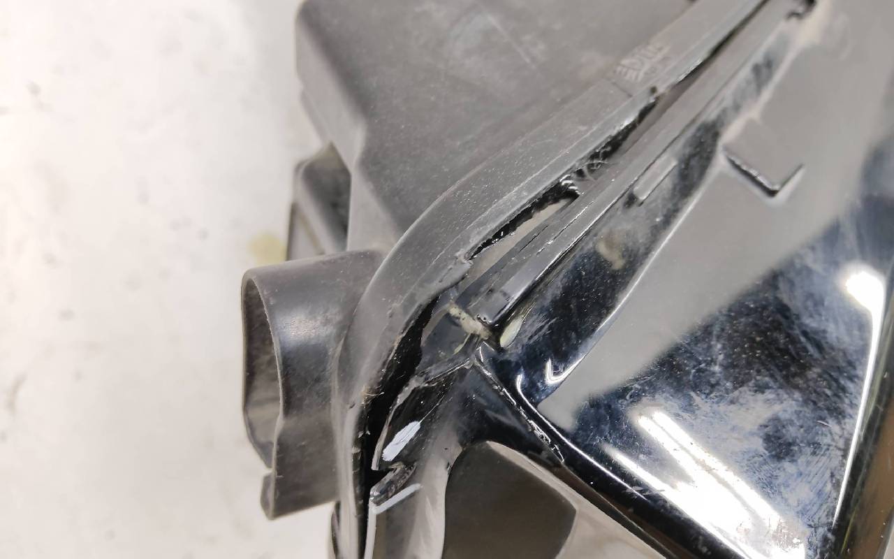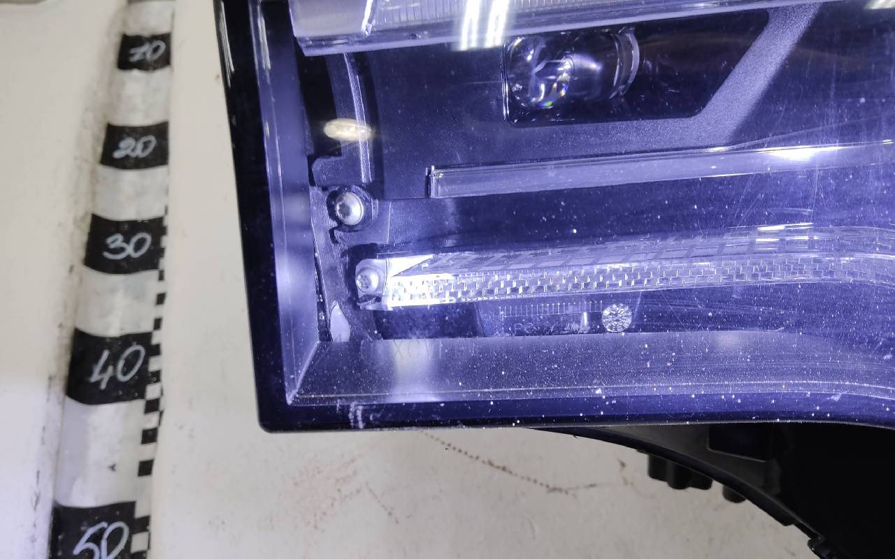 Состояние детали удовлетворительное. Заменено стекло, небольшой скол по кромке (не сквозной). Демонтирована нижняя часть маски. Крепления целые. Потребуется ремонт