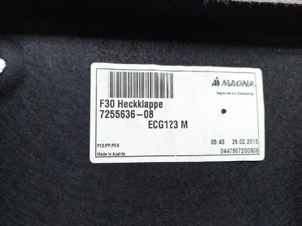 Деталь: BMW 3 F30 - Обшивка крышки багажника