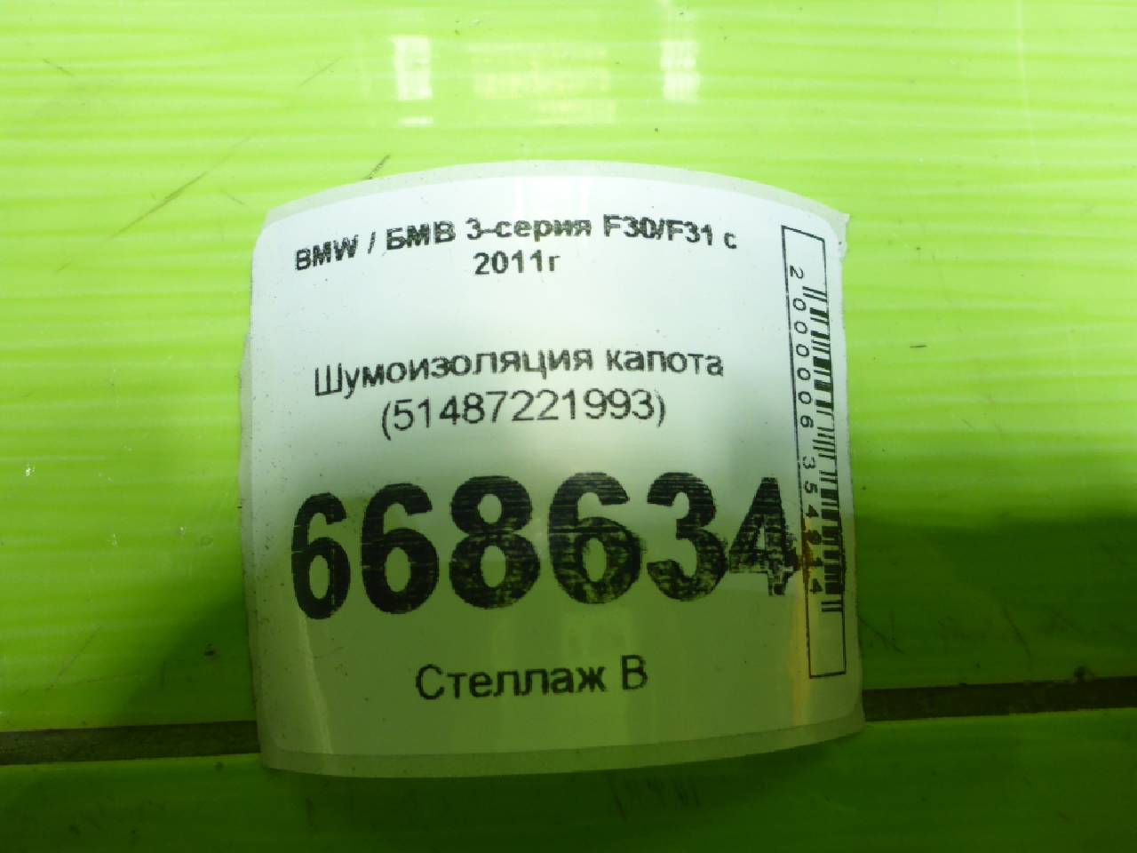 Деталь: BMW 3 F30 - Шумоизоляция капота (51487221993)