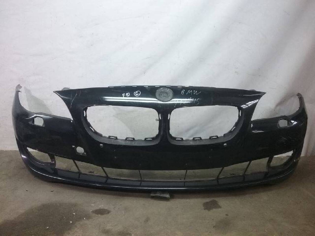 Бампер передний BMW 5 F10 черного цвета под парктроник и омыватели фар оригинал б/у незначительно повреждено левое крепление . . .