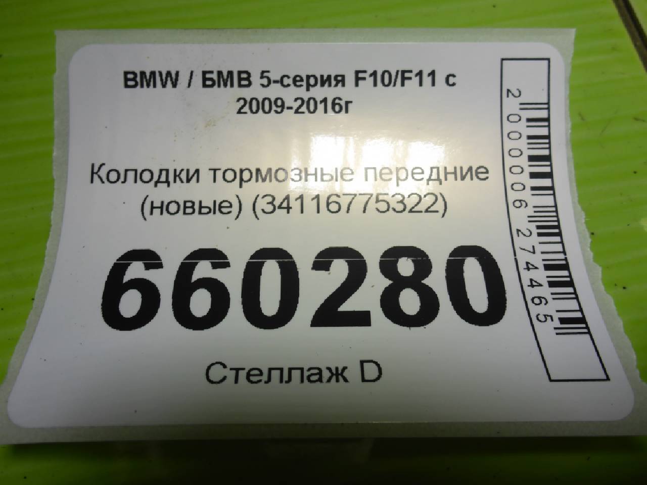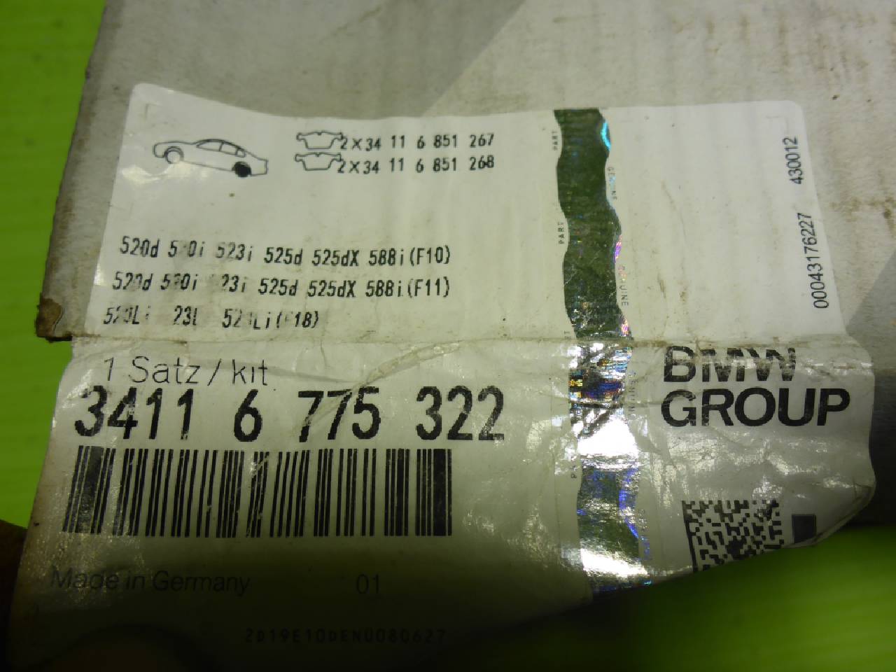 Деталь: BMW 5 F10 - Колодки тормозные передние (новые) (34116775322)