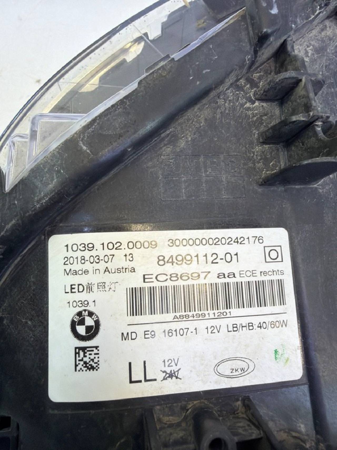 BMW 5-Series G30 G30 2016-2020 Фара правая прав
