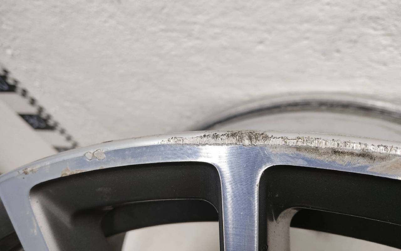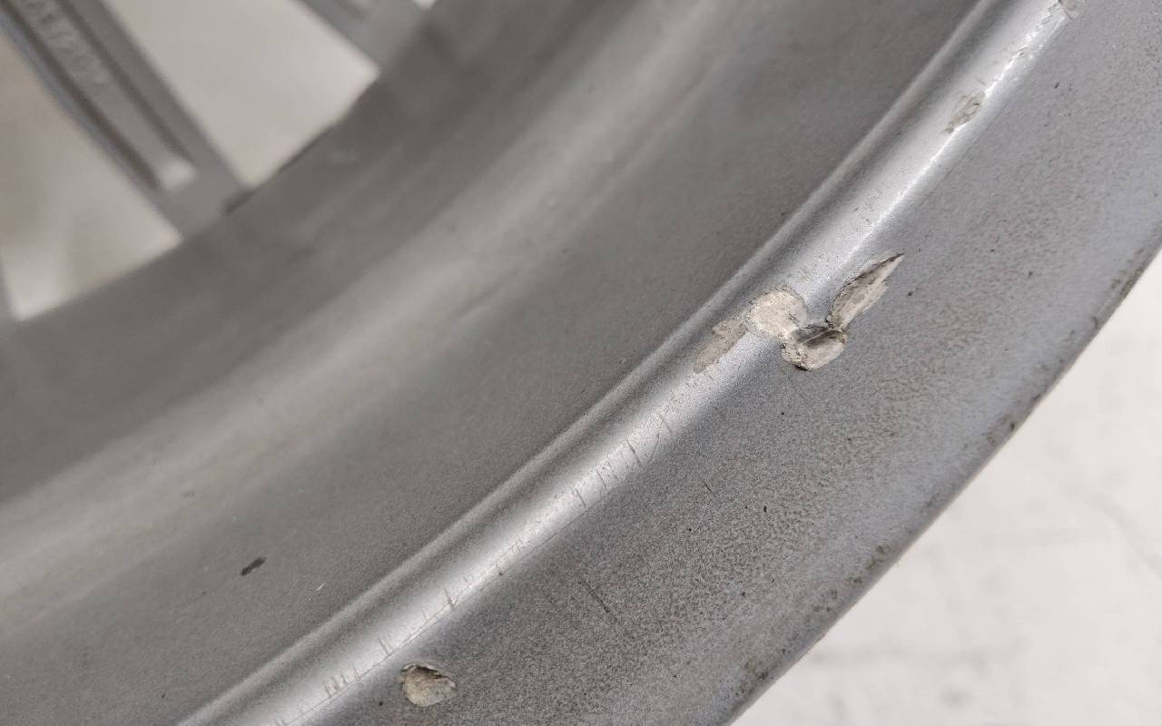 Состояние детали хорошее. Серебристого цвета, скол ЛКП. Небольшие царапины по внешнему ободу. Потребуется незначительный ремонт