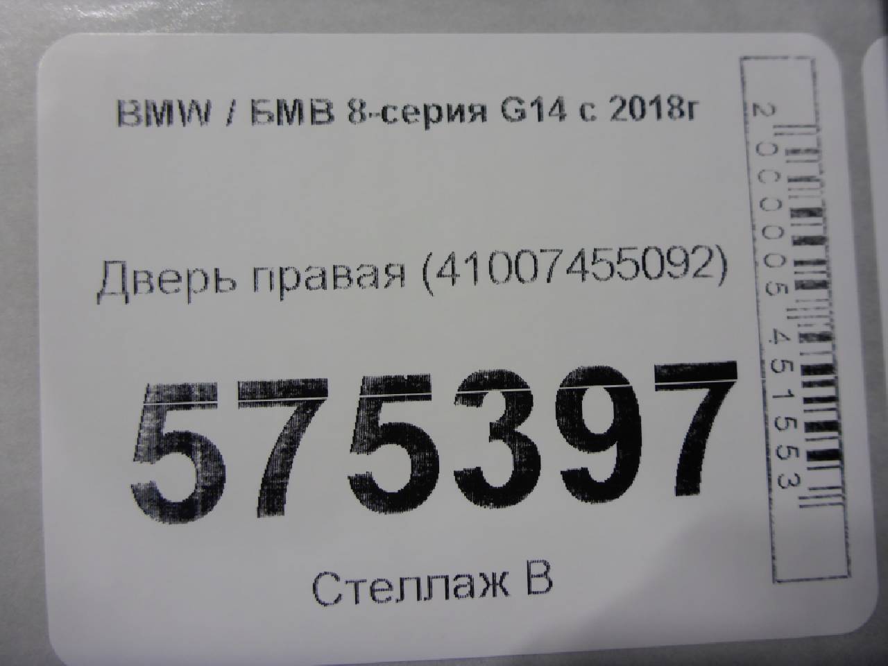 Деталь: BMW 8 G15 - Дверь правая (41007455092)