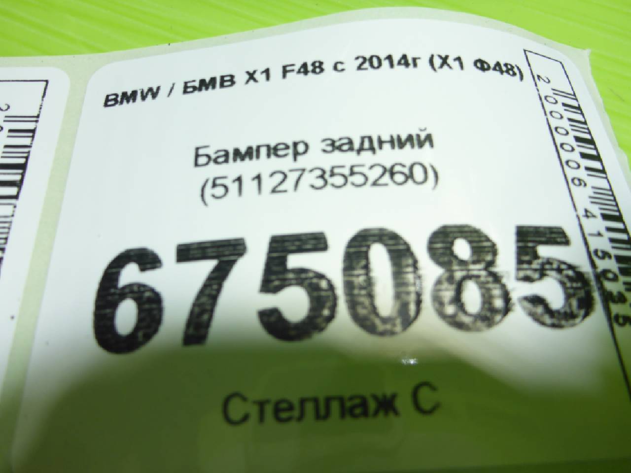 Деталь: BMW X1 F48 - Бампер задний (51127355260)
