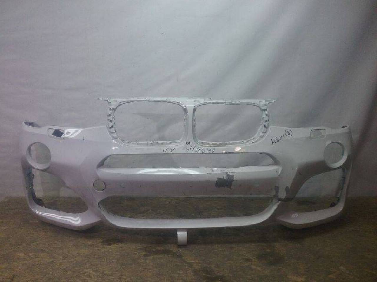 Бампер передний BMW X3 f25 M пакет белого цвета под парктроник и омыватели фар оригинал б/у после ремонта все крепления целые. . .