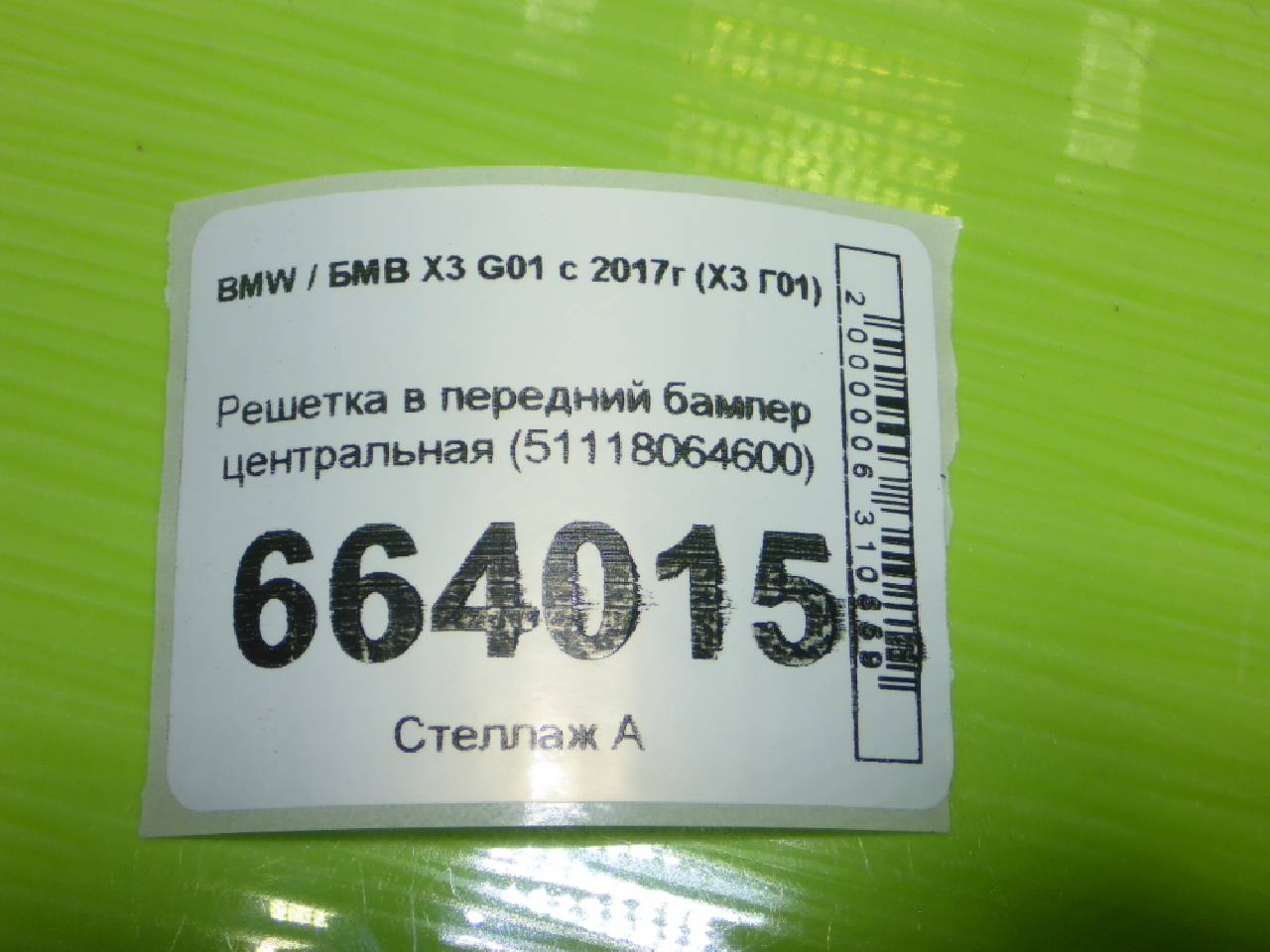 Деталь: BMW X3 G01 - Решетка в передний бампер центральная (51118064600)
