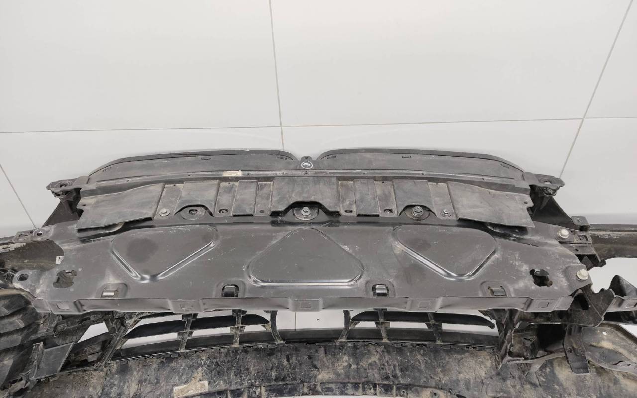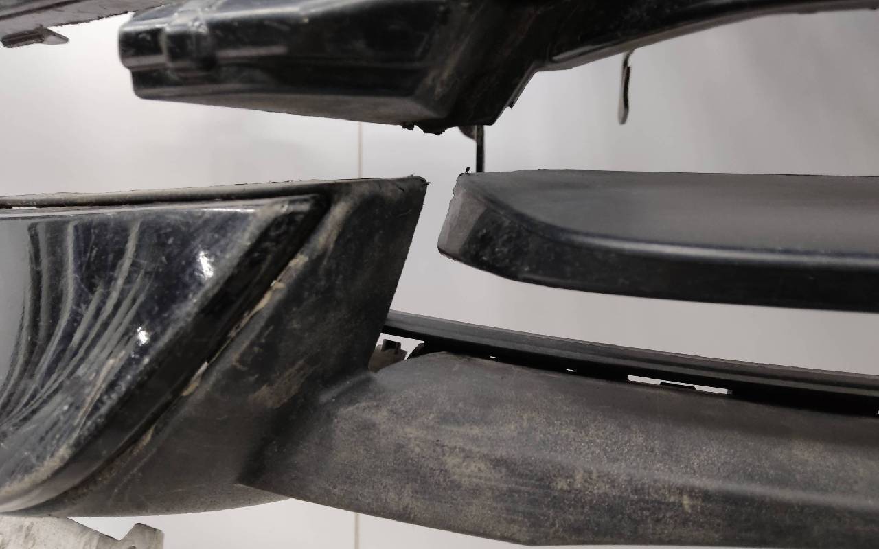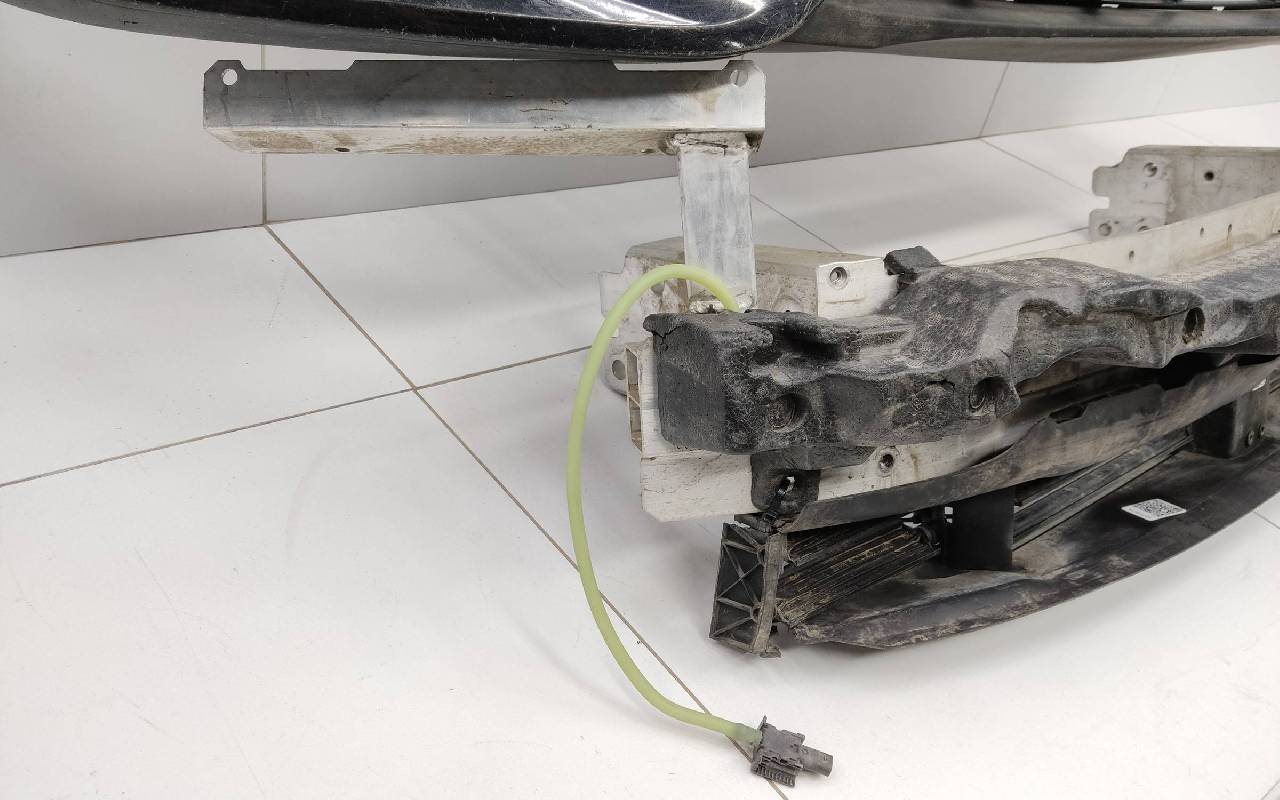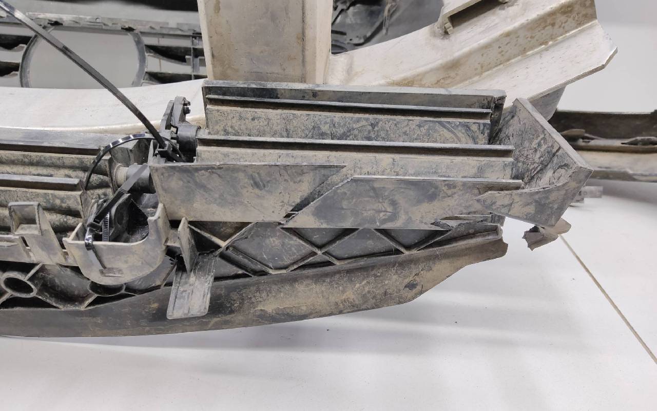 Состояние детали хорошее. Чёрного цвета в сборе без правой рамки и левого кронштейна. Под парктроники. Царапины. Трещины, сколы на решетках. Погнуто крепление на усилителе, лопнул шов. Отсутствует одно крепление на юбке, сломано крепление под левый съёмный кронштейн жалюзи. Потребуется ремонт. Общ.вес: 21,5кг