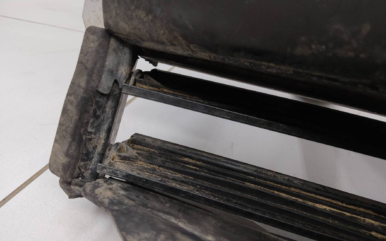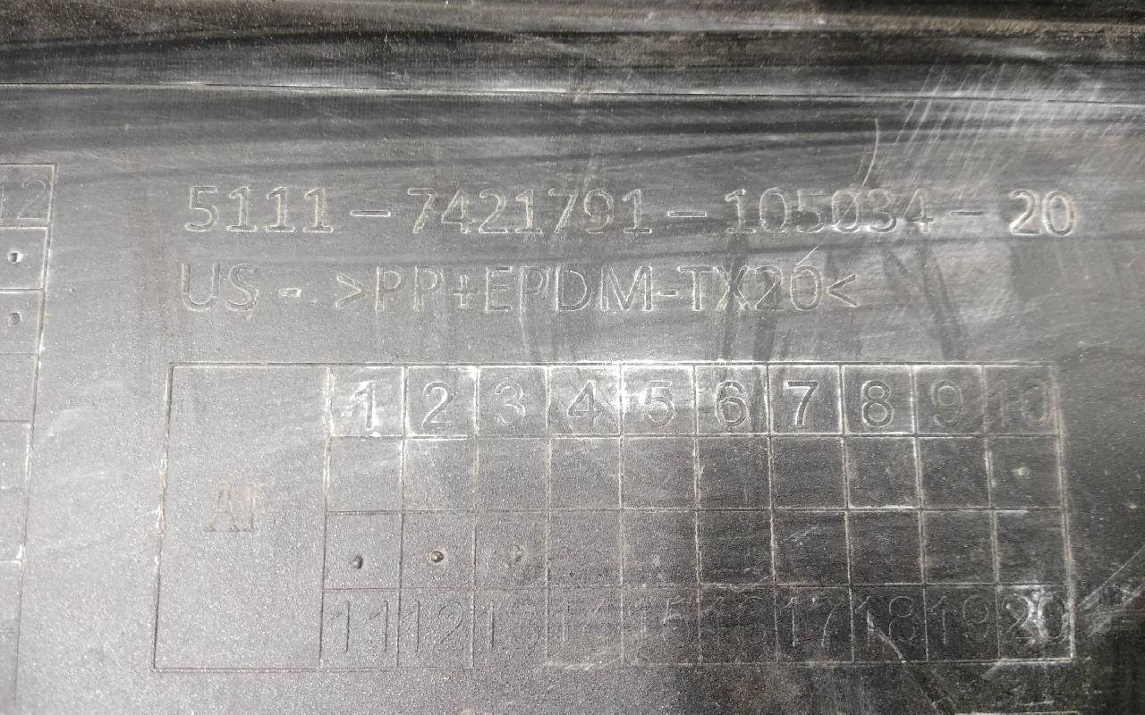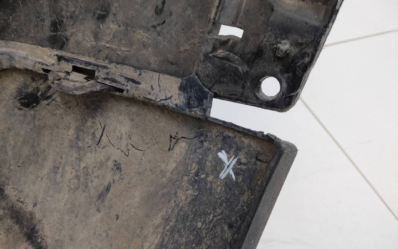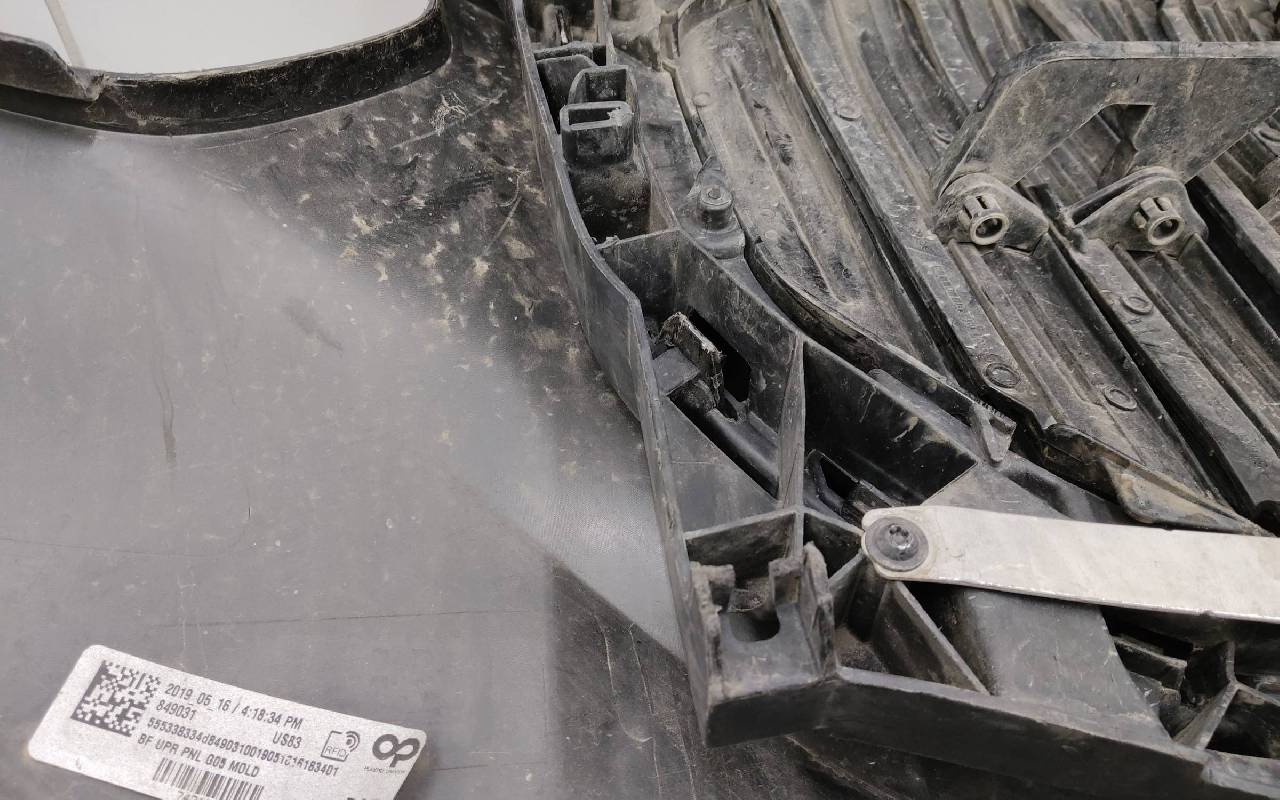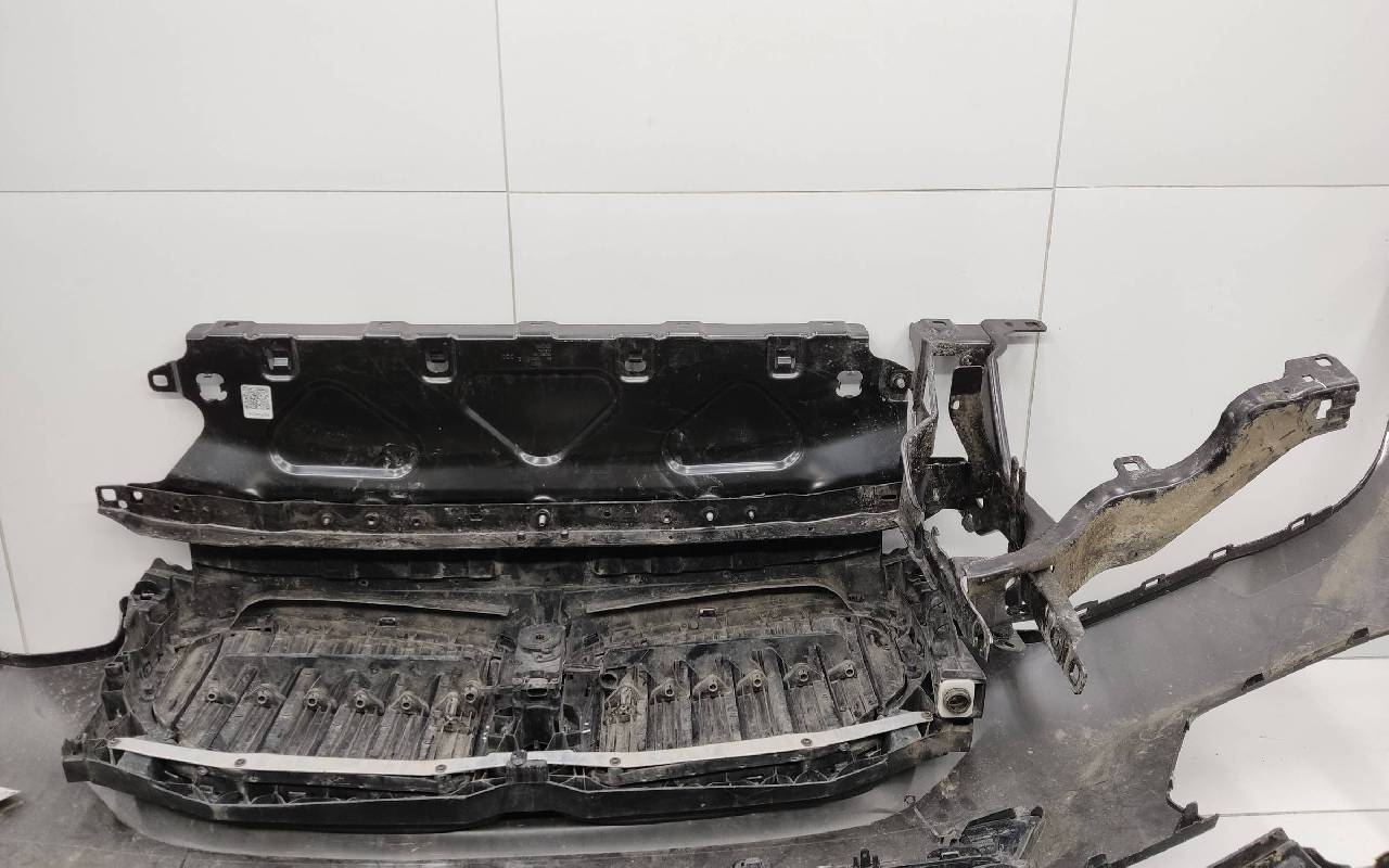 Состояние детали хорошее. Чёрного цвета в сборе без правой рамки и левого кронштейна. Под парктроники. Царапины. Трещины, сколы на решетках. Погнуто крепление на усилителе, лопнул шов. Отсутствует одно крепление на юбке, сломано крепление под левый съёмный кронштейн жалюзи. Потребуется ремонт. Общ.вес: 21,5кг