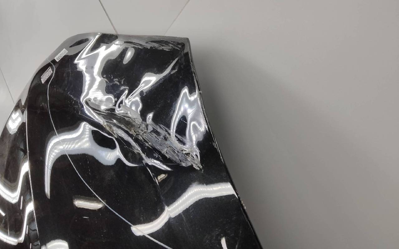 Состояние детали удовлетворительное. Чёрного цвета в плёнке, скол ЛКП. Вмятина на внешней и внутренней поверхности. Потребуется ремонт