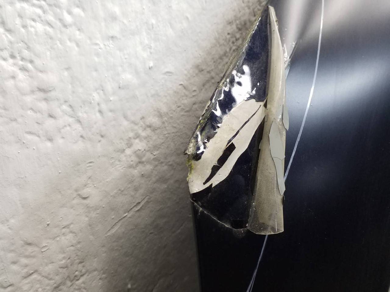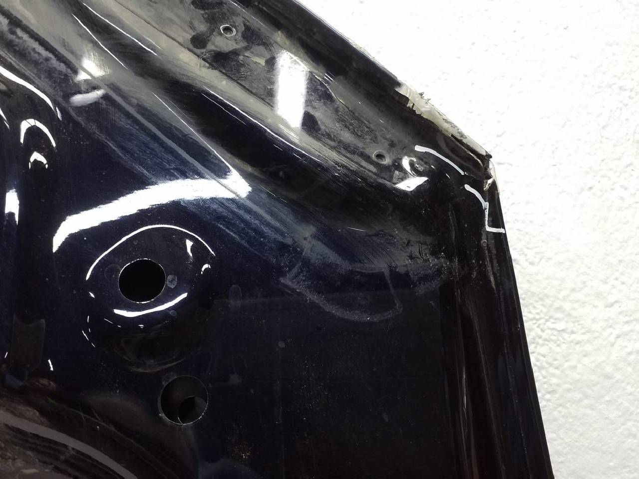 Состояние детали хорошее. Тёмно синего цвета в пленке, скол ЛКП,дефект металла на фото. Вмятина. Под ремонт