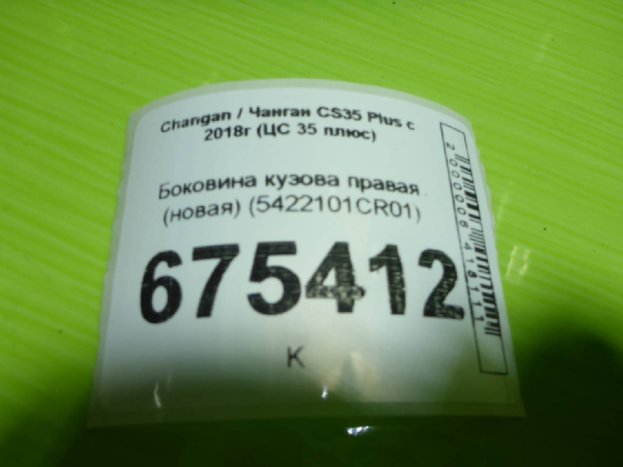 Деталь: Changan CS35 Plus - Боковина кузова правая (новая) (5422101CR01)