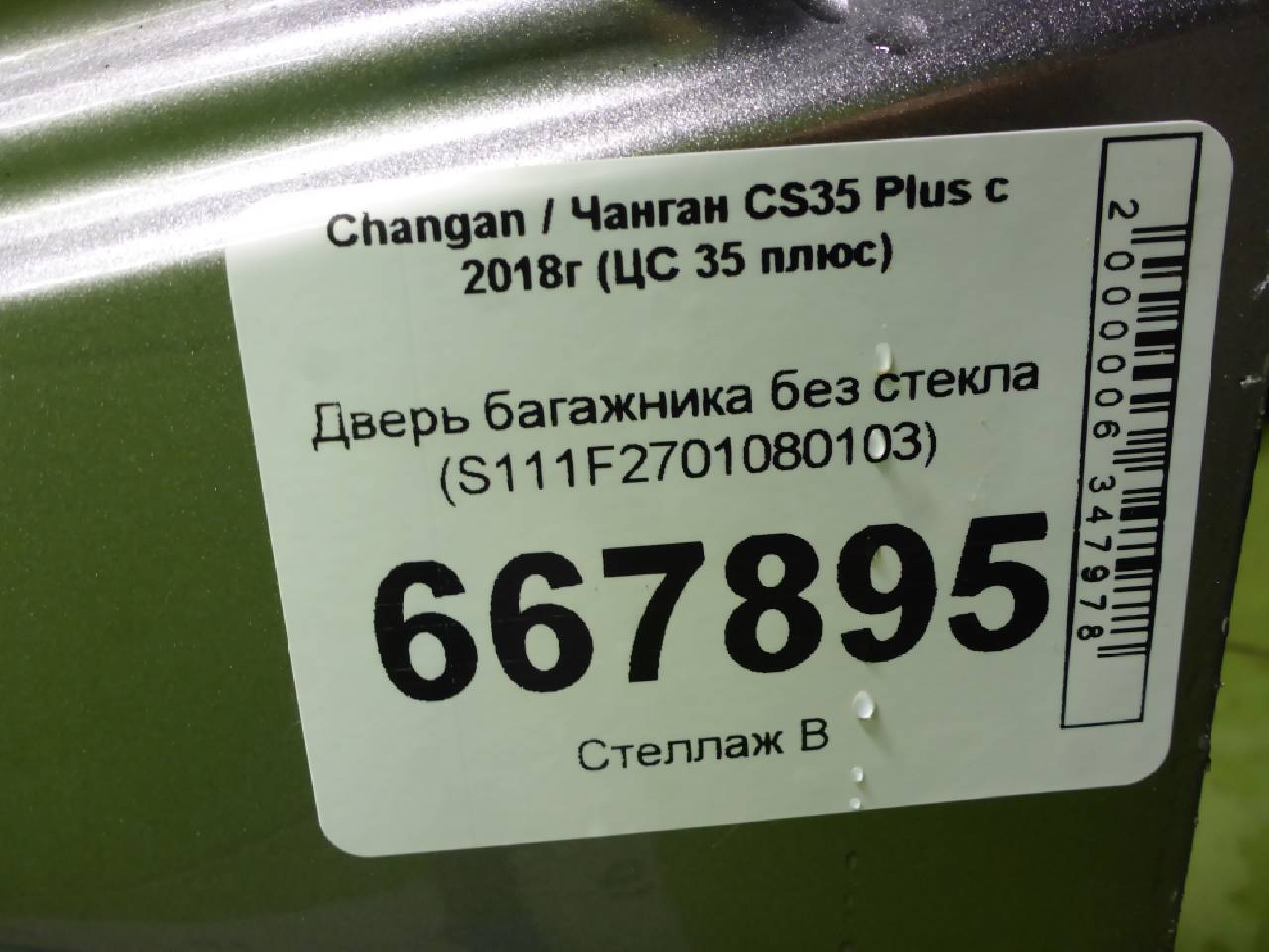 Деталь: Changan CS35 Plus - Крышка багажника без стекла (S111F2701080103)