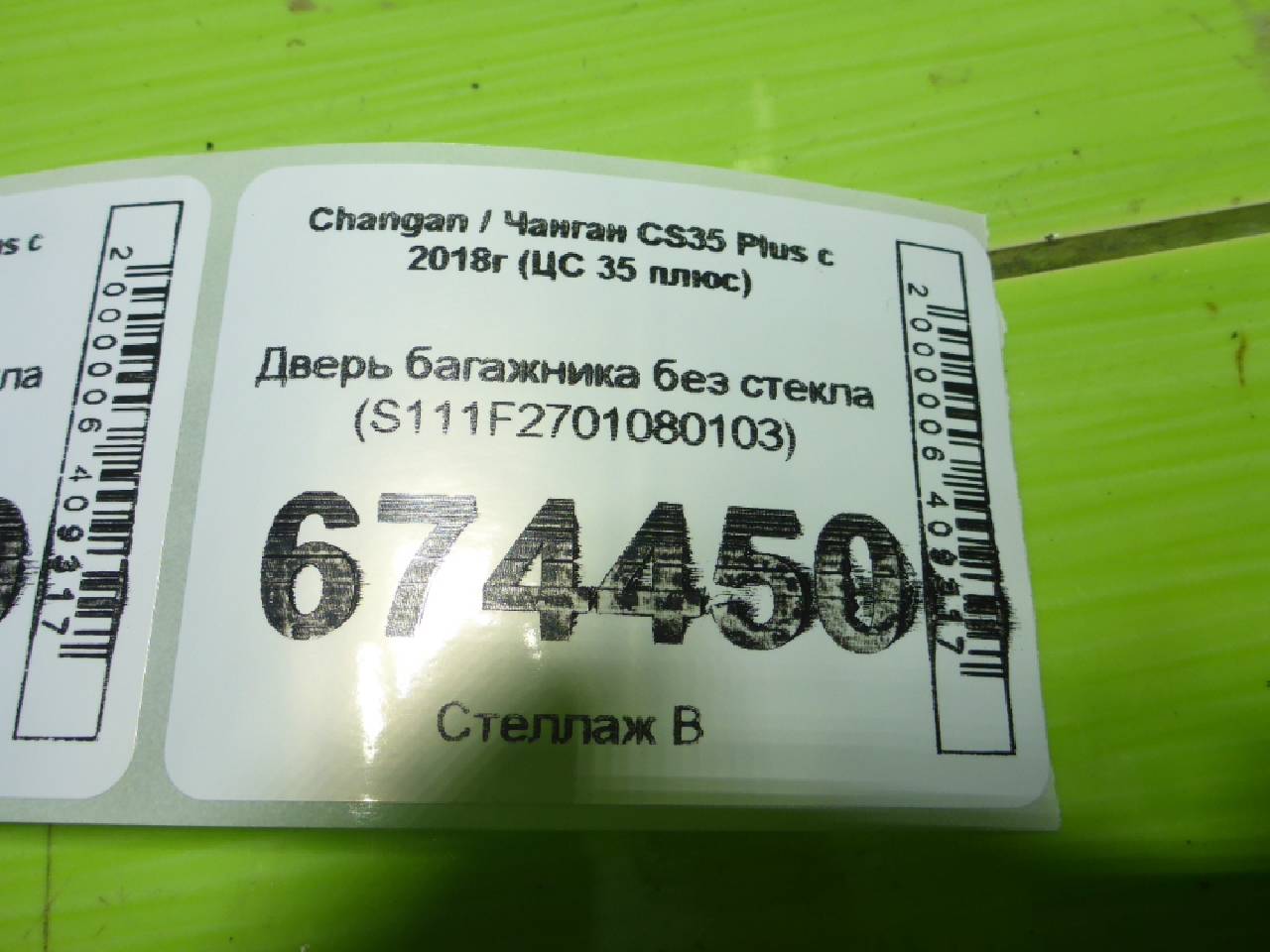 Деталь: Changan CS35 Plus - Крышка багажника без стекла (S111F2701080103)