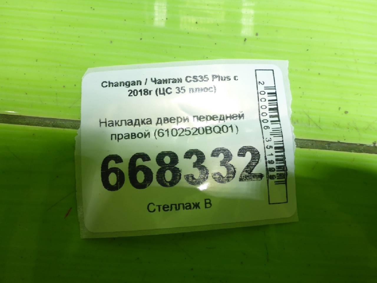 Деталь: Changan CS35 Plus - Накладка двери передней правой (6102520BQ01)
