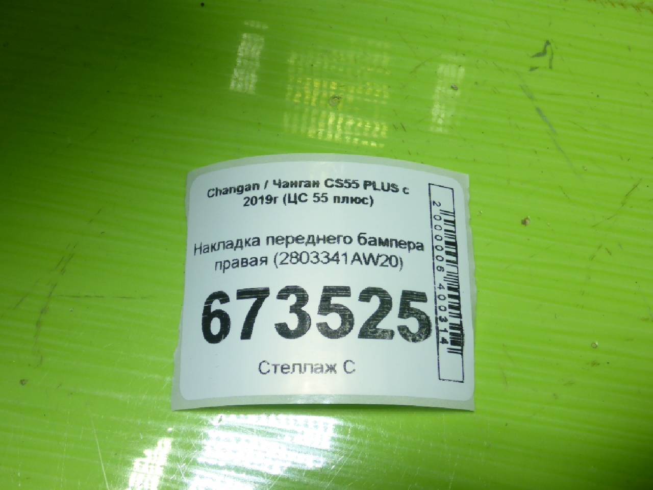 Деталь: Changan CS55 Plus - Накладка переднего бампера правая (2803341AW20)