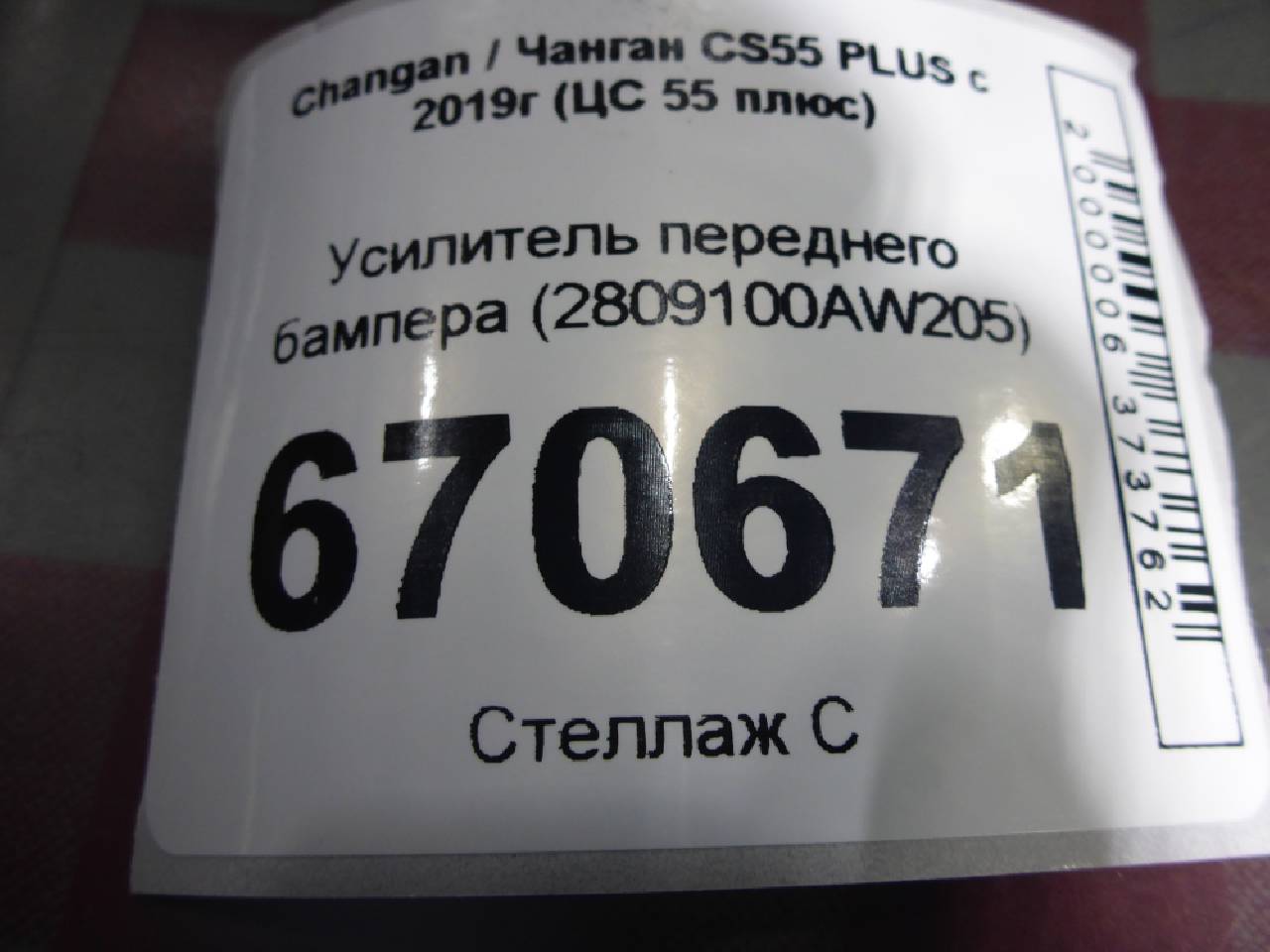 Купить Усилитель переднего бампера (2809100AW205) 2809100AW205 для Changan CS55 Plus (Чанган ЦС55 Плюс) RR670671 ✓ с доставкой по Москве и России