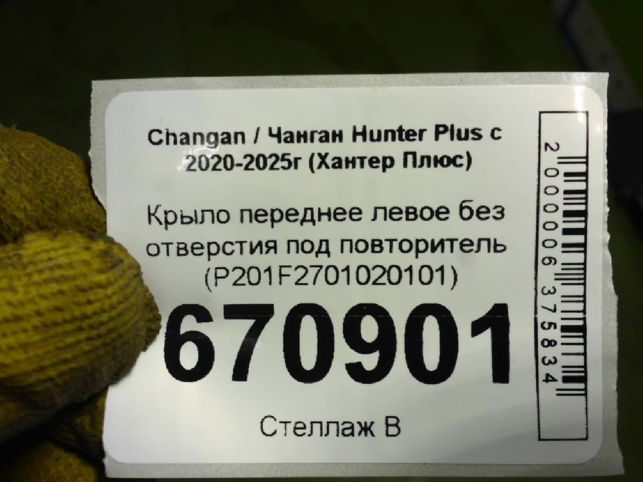 Деталь: Changan Hunter Plus - Крыло переднее левое без отверстия под повторитель (P201F2701020101)