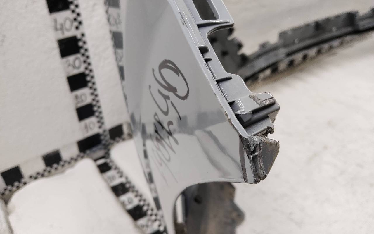Состояние детали хорошее. Светло-серого цвета. После небольшого ремонта, царапины, дефект пластика левого верхнего уголка. Крепления целые, сломано две направляющие. Потребуется незначительный дополнительный ремонт
