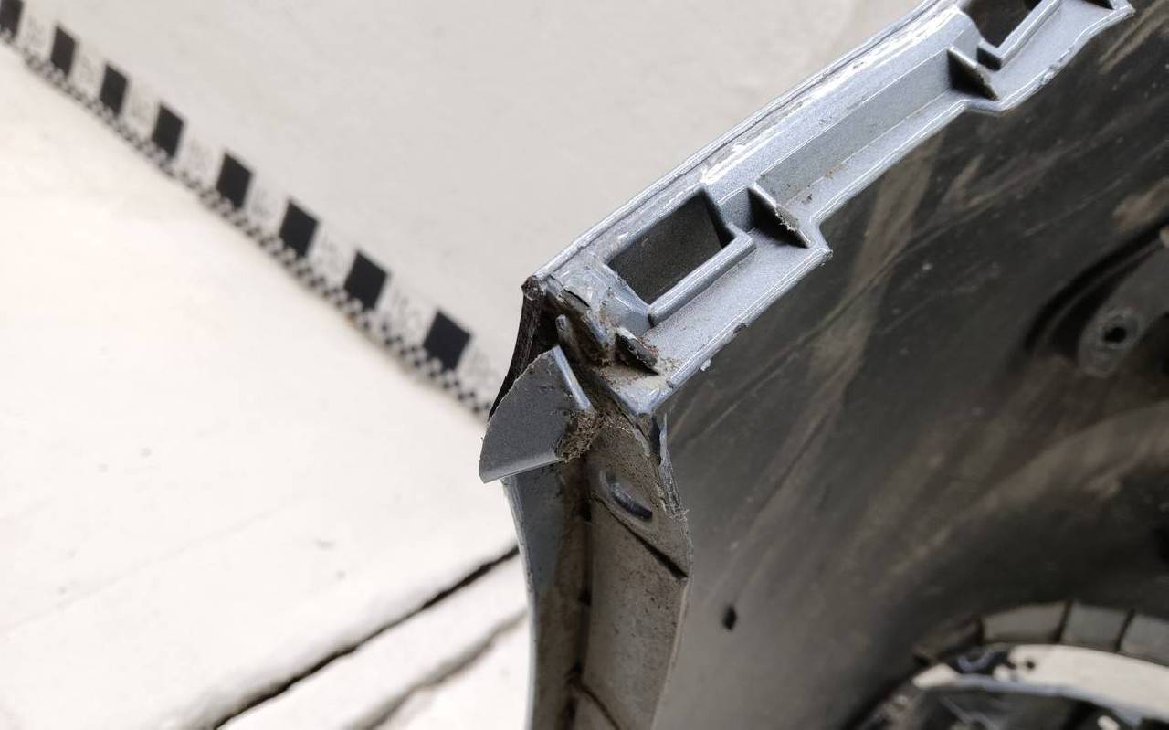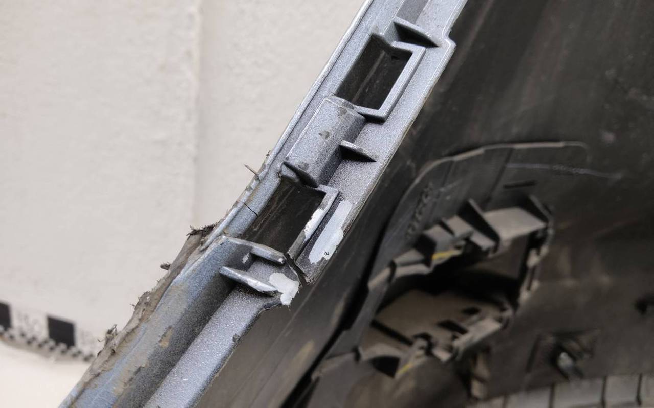 Состояние детали хорошее. Серо-голубого цвета под парктроники. Сломан уголок, царапина. Лопнул один замок. Потребуется незначительный ремонт