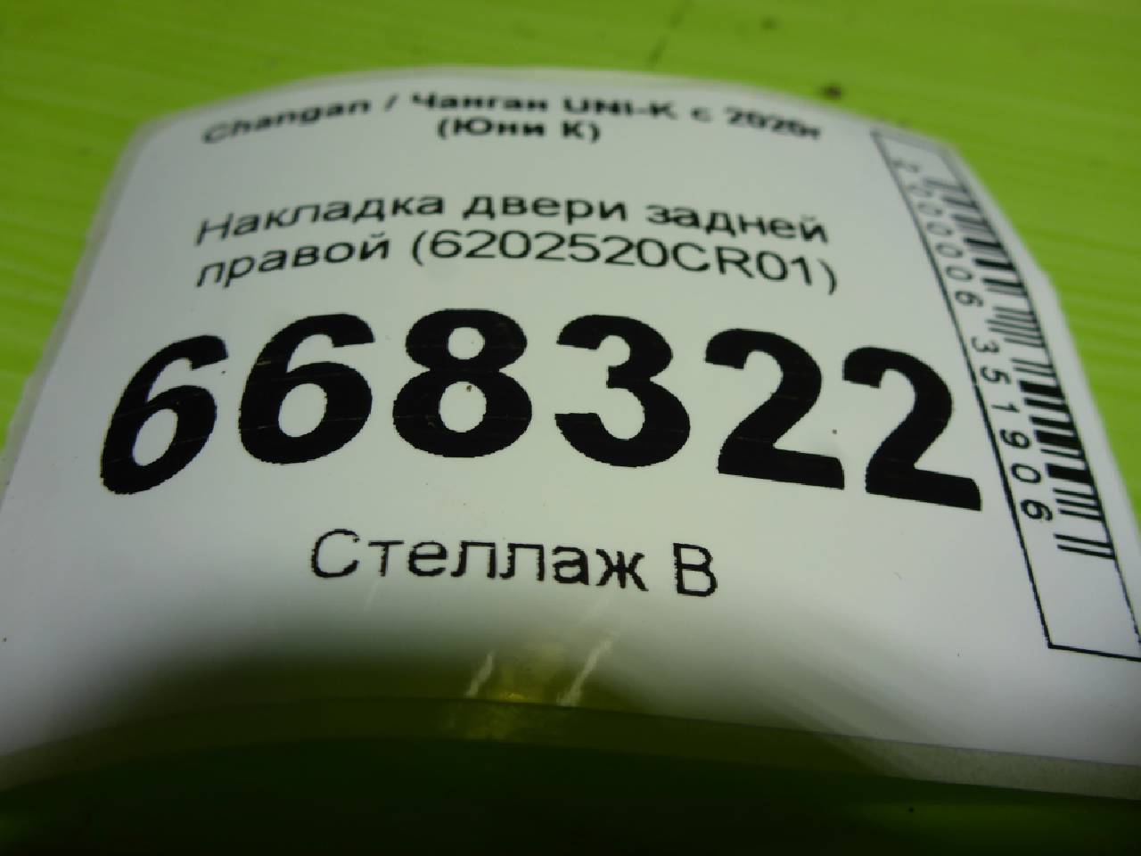 Деталь: Changan UNI-K - Накладка двери задней правой (6202520CR01)