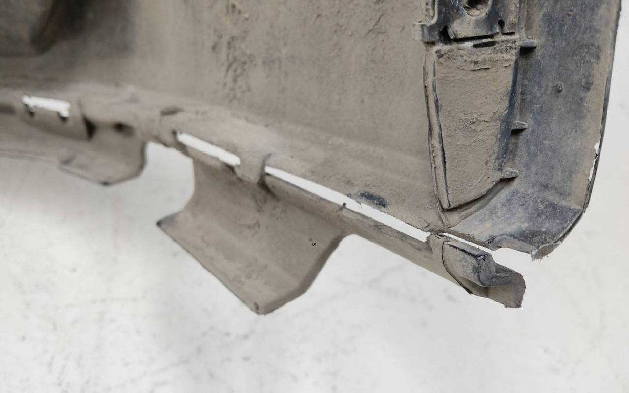 Состояние детали хорошее. Тёмно-синего цвета под парктроники. Царапинки. Дефект одного нижнего крепления. Может потребоваться незначительный ремонт
