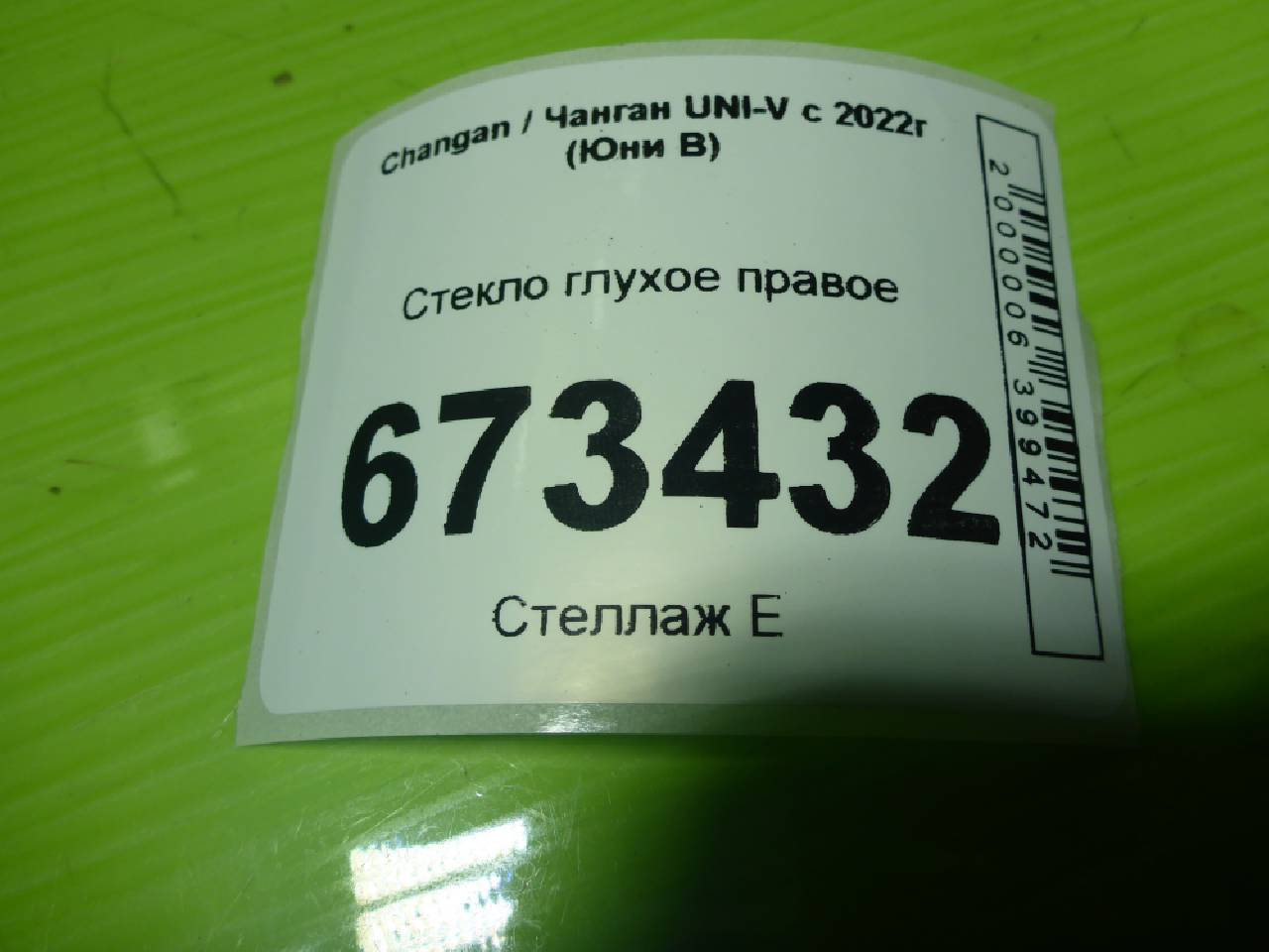 Деталь: Changan UNI-V - Стекло глухое правое