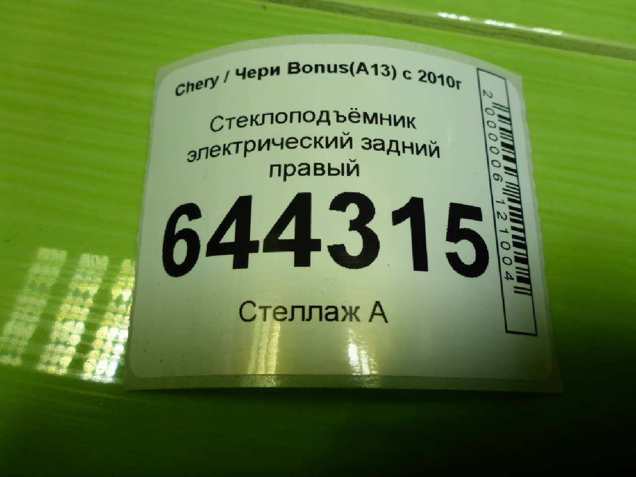 Деталь: Chery Bonus A13 - Стеклоподъемник электрический задний правый (A136204020DB)