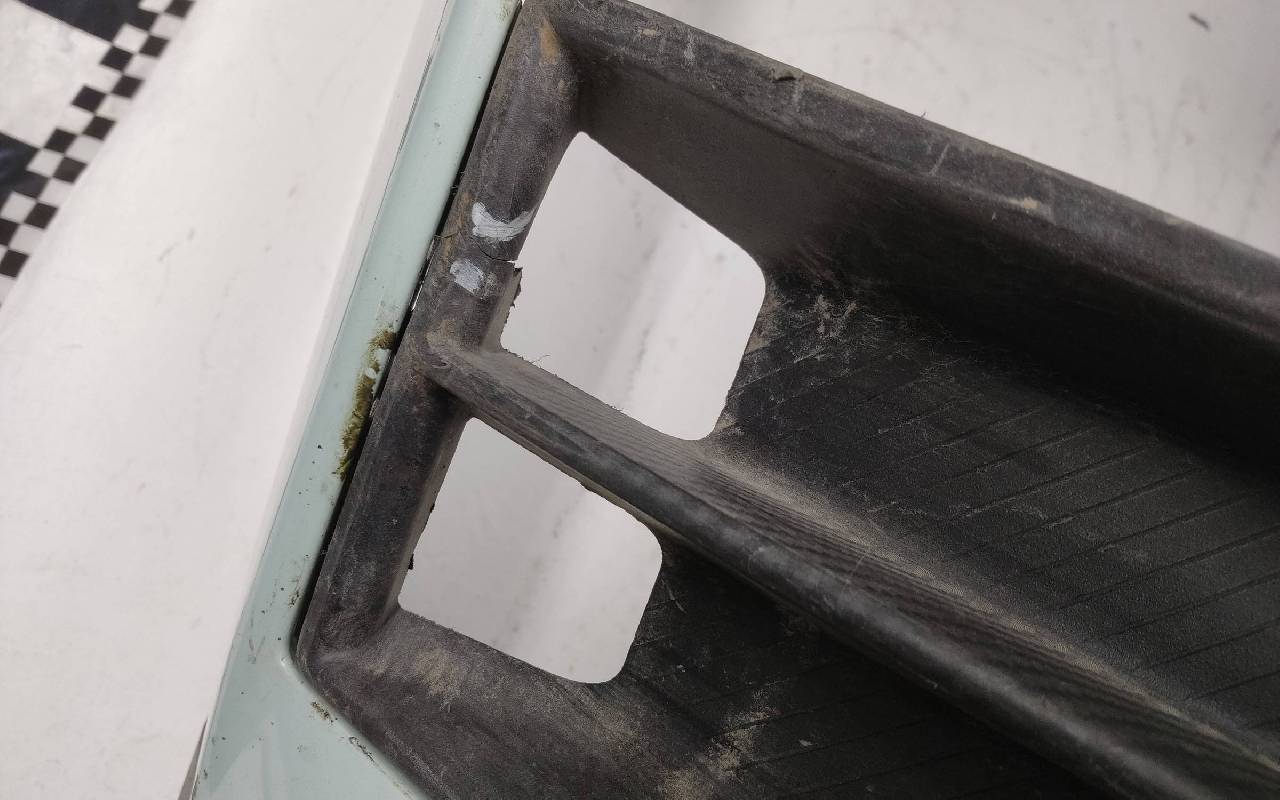 Состояние детали хорошее. Светло-зелёного цвета под парктроники. В сборе. Решётка без окрашиваемой вставки. Небольшой скол на каркасе и по кромке юбки, трещинка на бампере в проёме ПТФ. Крепления целые. Потребуется незначительный ремонт