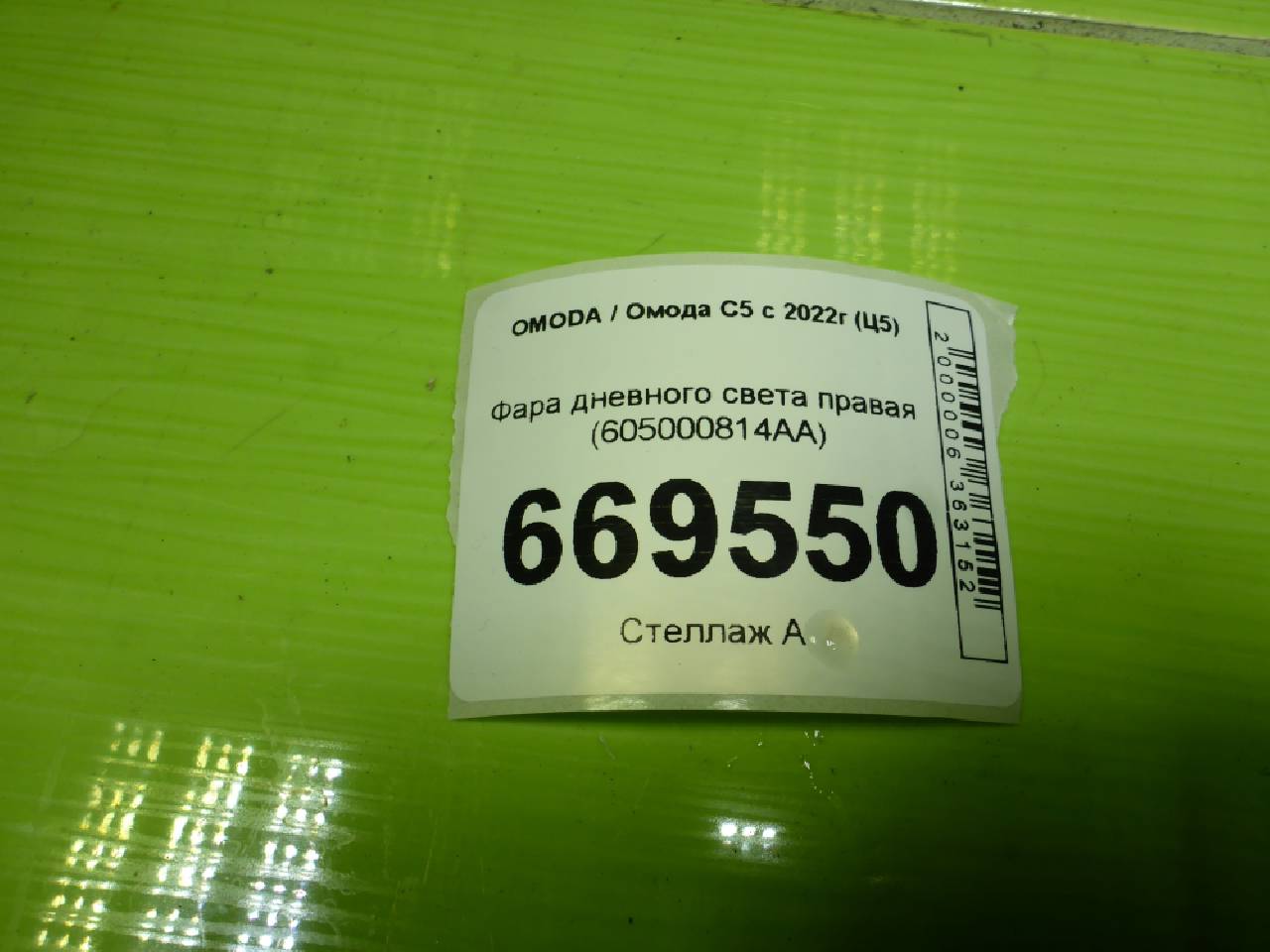 Деталь: Chery Omoda C5 - Фара дневного света правая (605000814AA)