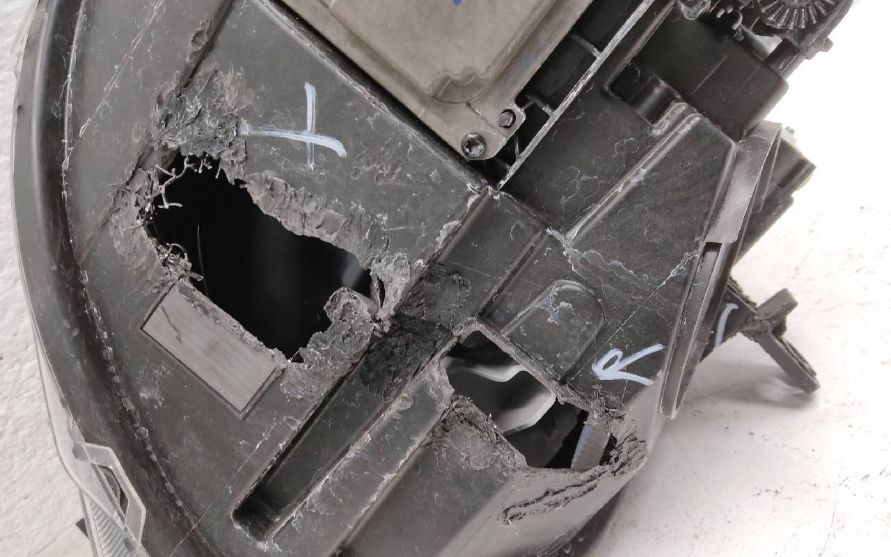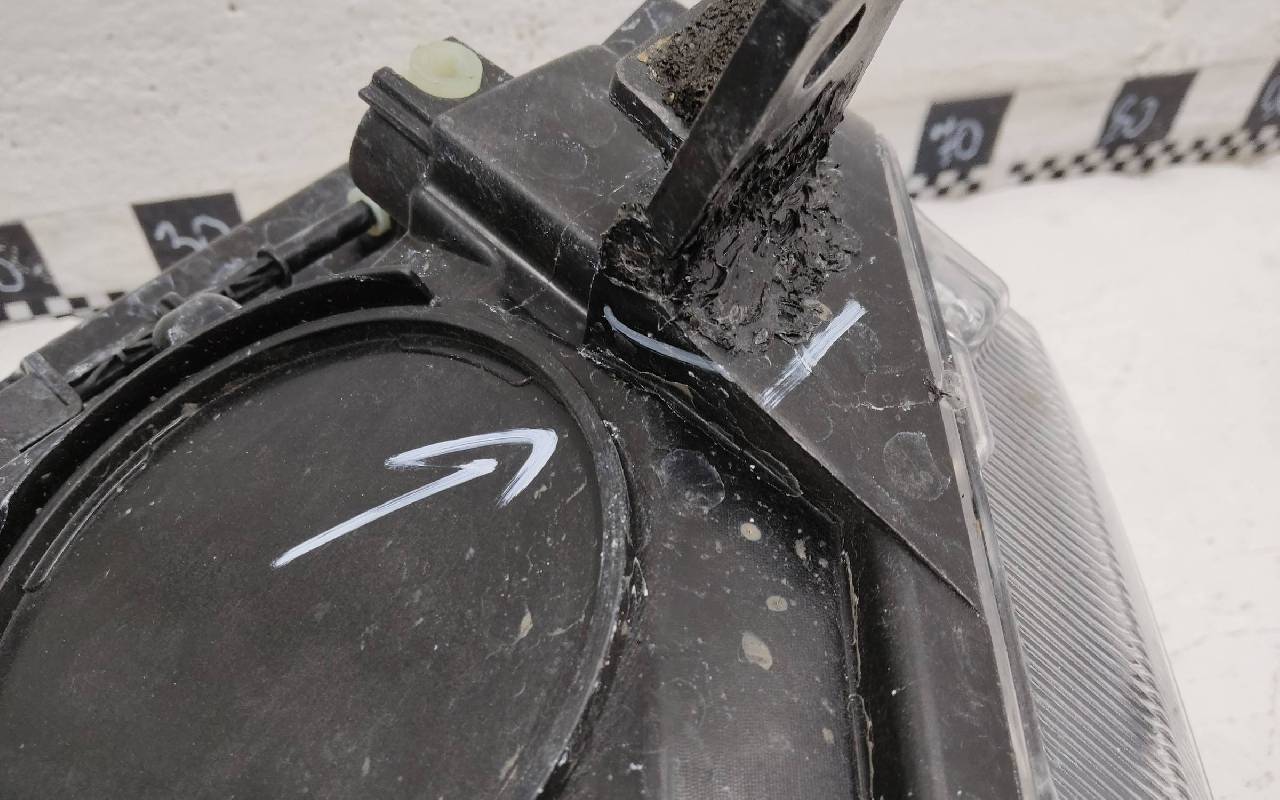 Состояние детали очень плохое. Потёртость стекла. Отсутствуют фрагменты корпуса и одно крепление. Нижнее крепление припаяно. На запчасти, без гарантии на возврат