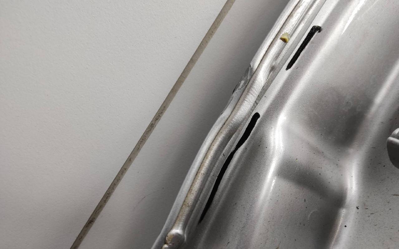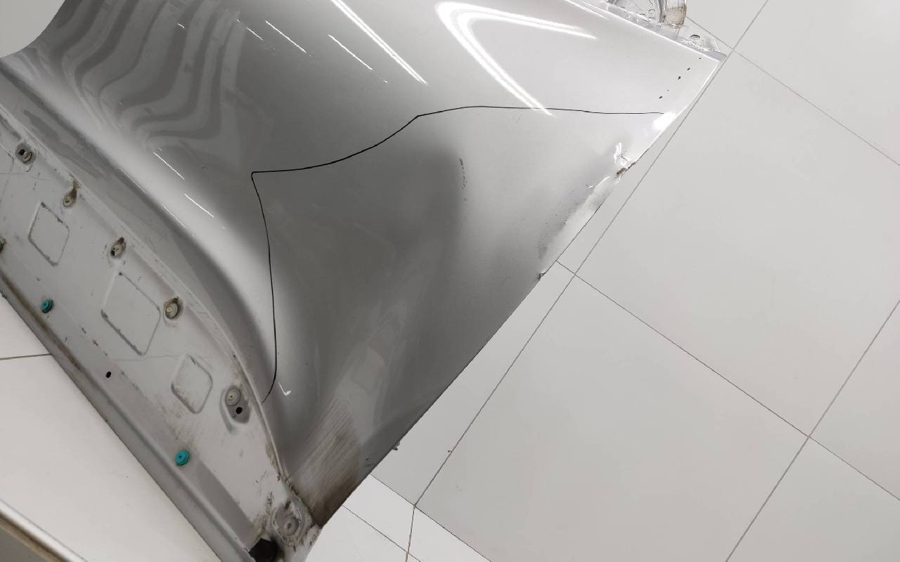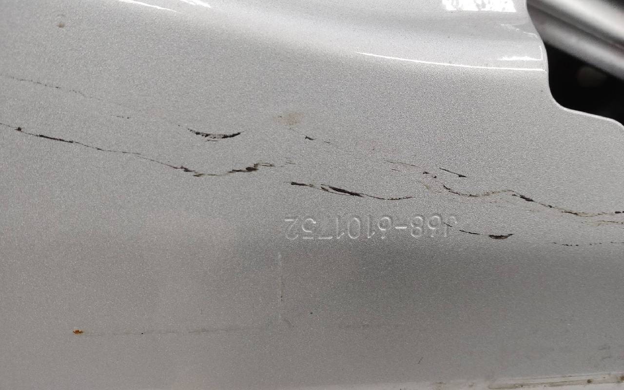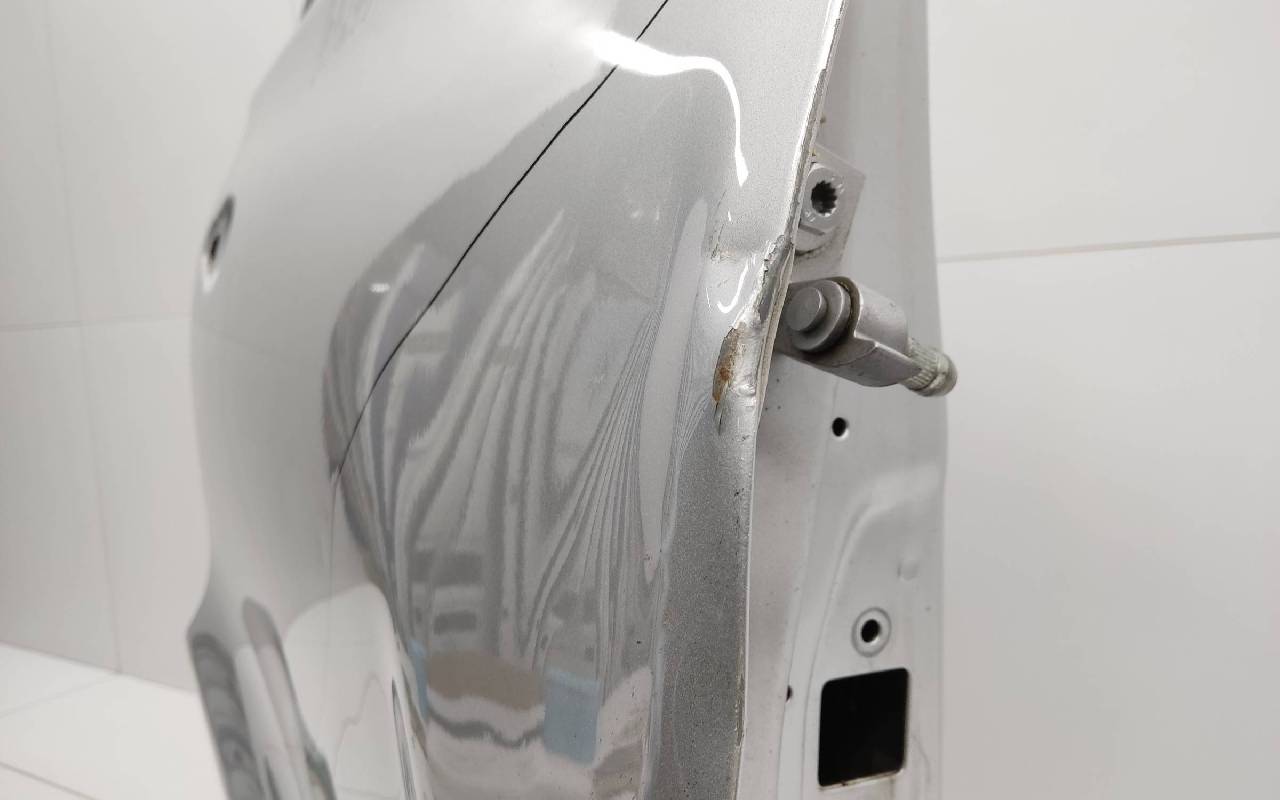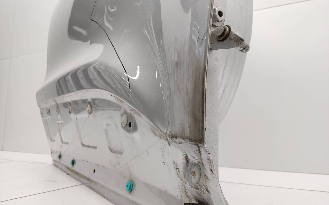 Состояние детали удовлетворительное. Серебристого цвета, скол ЛКП. Вмятины. Потребуется ремонт
