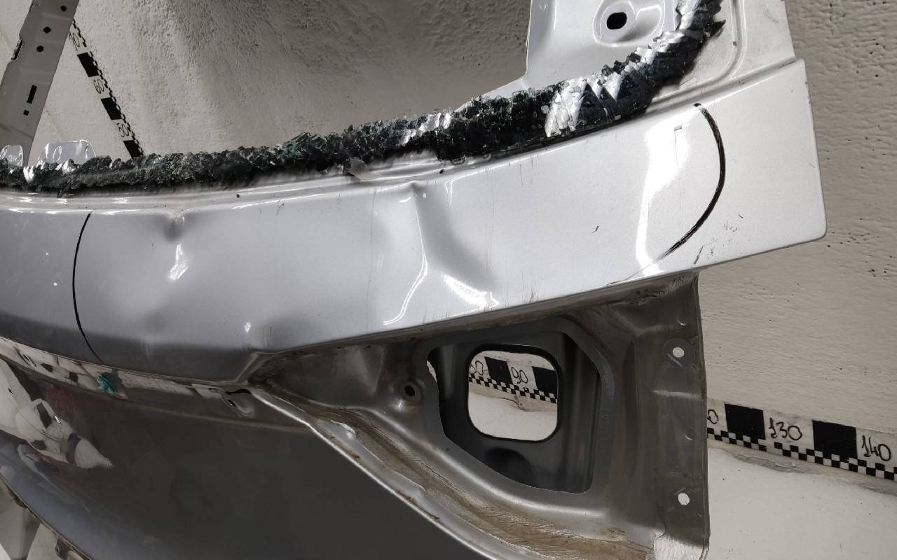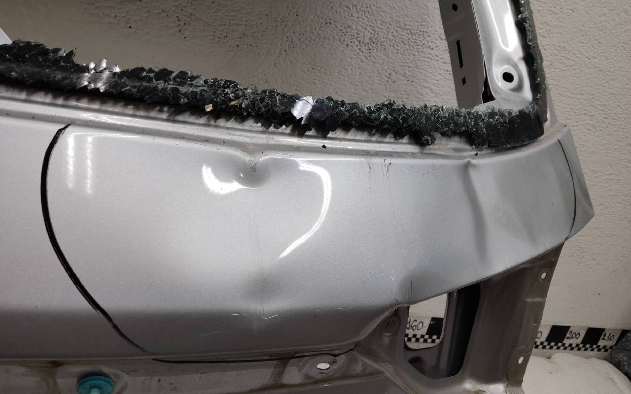 Состояние детали удовлетворительное. Серебристого цвета, скол ЛКП. Вмятины. Потребуется ремонт