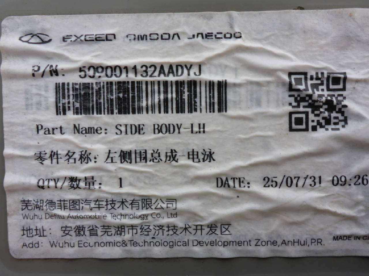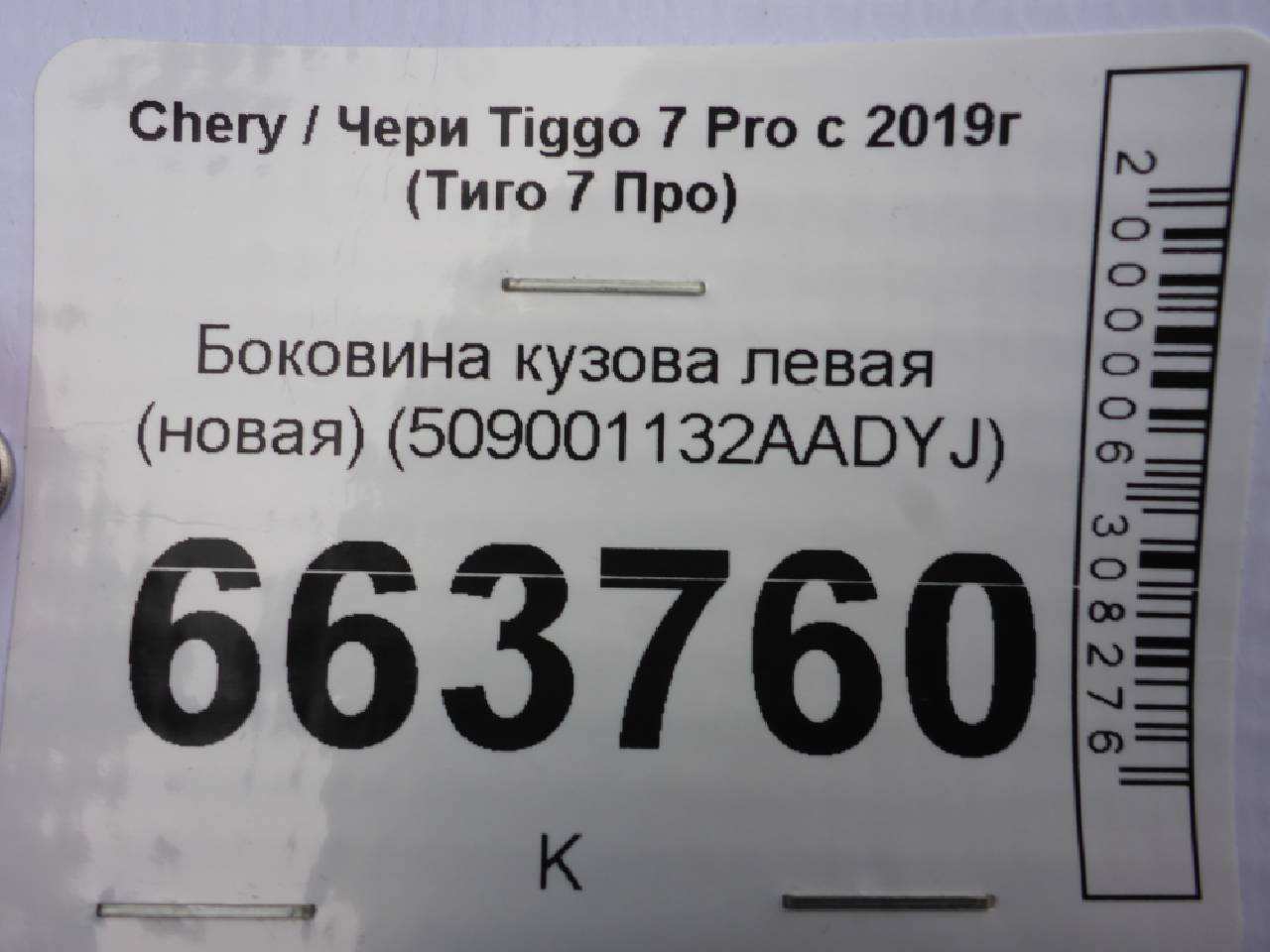 Деталь: Chery Tiggo 7 Pro - Боковина кузова левая (новая) (509001132AADYJ)