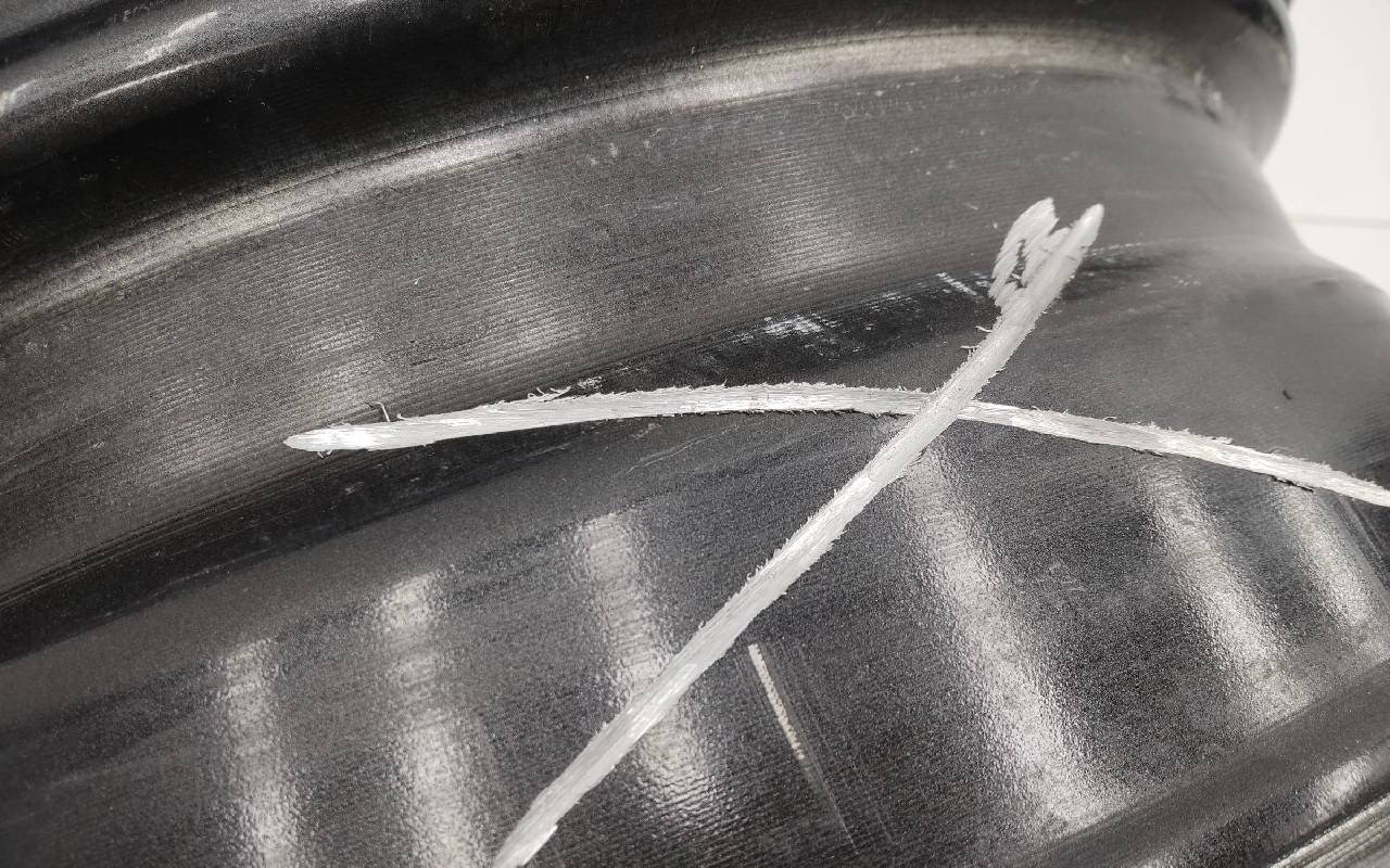 Состояние детали удовлетворительное. Серого цвета, дефект ЛКП. Надпилы по борту и на лицевой поверхности. Потребуется ремонт