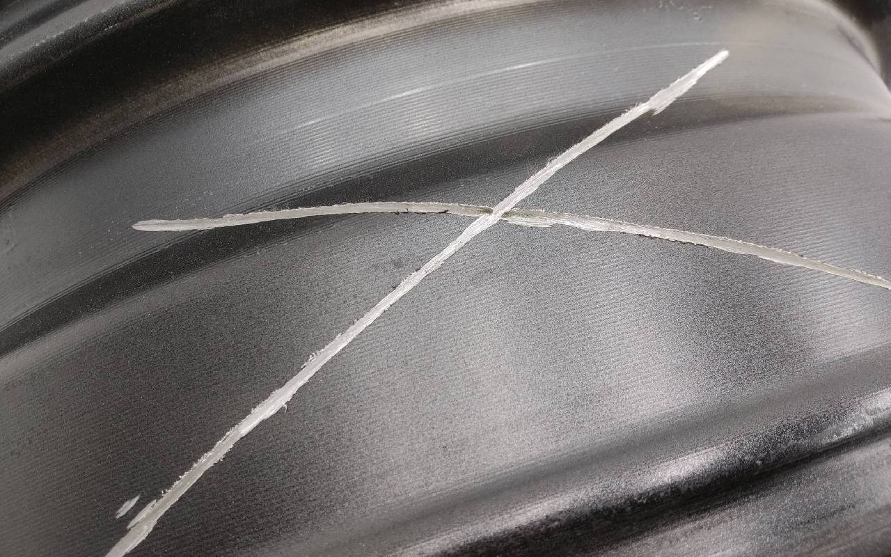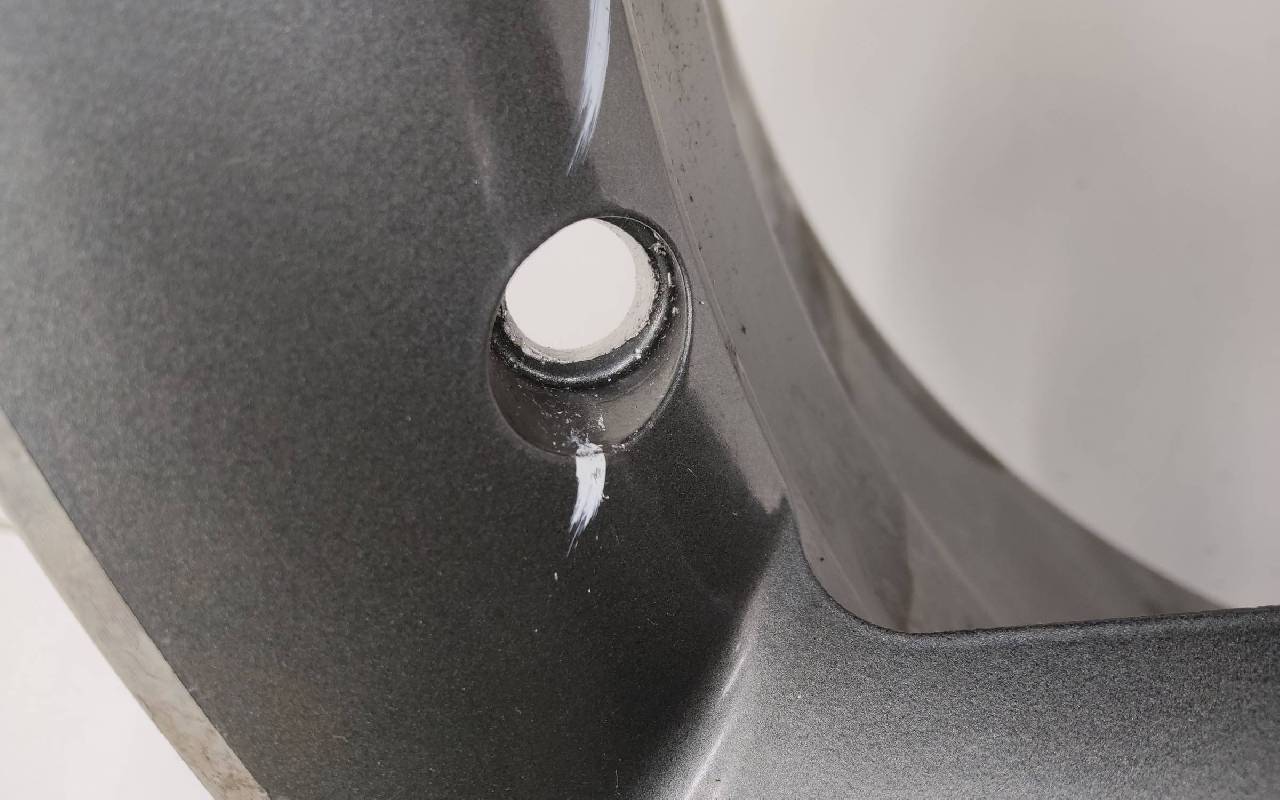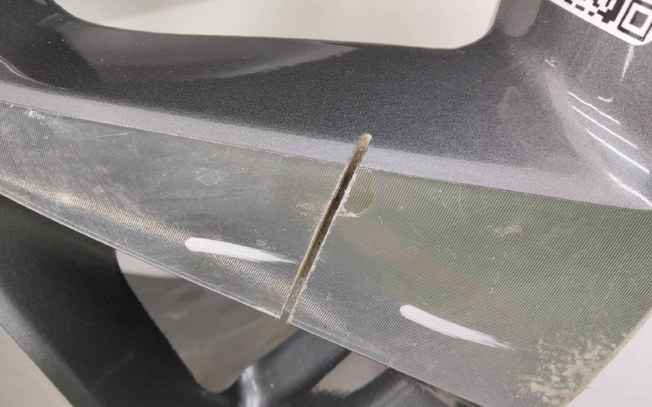Состояние детали удовлетворительное. Серого цвета, дефект ЛКП. Надпилы по борту и на лицевой поверхности. Потребуется ремонт
