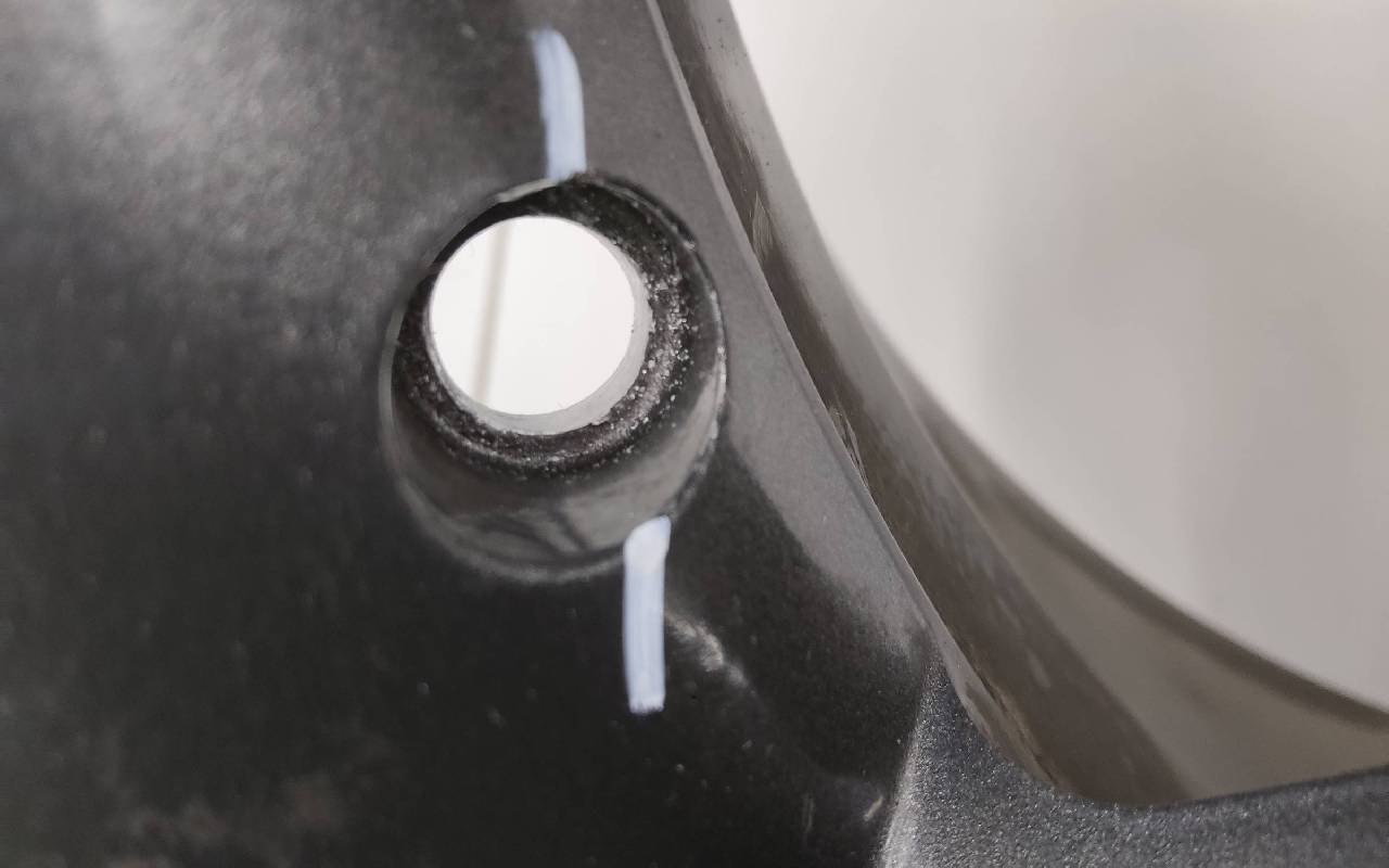 Состояние детали удовлетворительное. Серого цвета, дефект ЛКП. Надпилы по борту и на лицевой поверхности. Потребуется ремонт