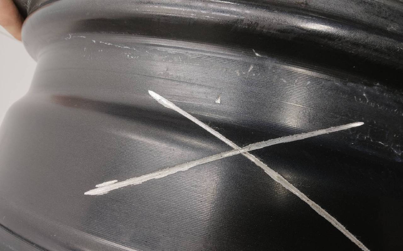 Состояние детали удовлетворительное. Серого цвета, дефект ЛКП. Надпилы по борту и на лицевой поверхности. Потр