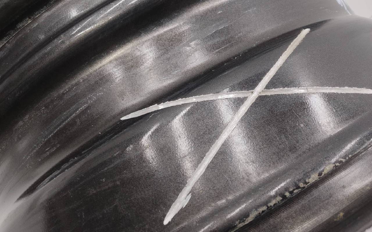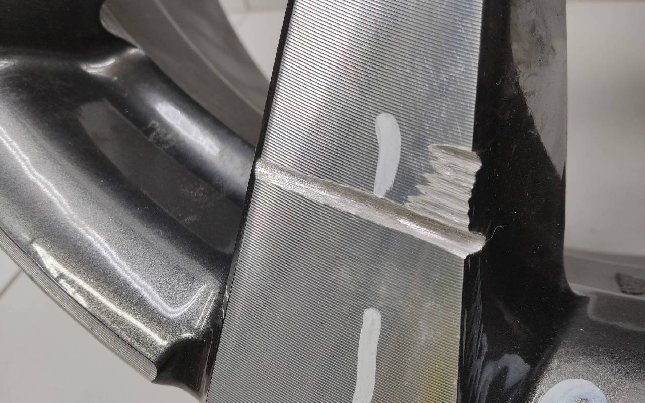 Состояние детали удовлетворительное. Серого цвета, дефект ЛКП. Надпилы по борту и на лицевой поверхности. Потребуется ремонт